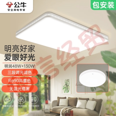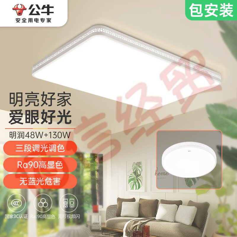 公牛(BULL)吸顶灯 明润MX-C130D-BS卧室灯客厅灯全屋灯北欧风简约现代 130W+48W套装 自营