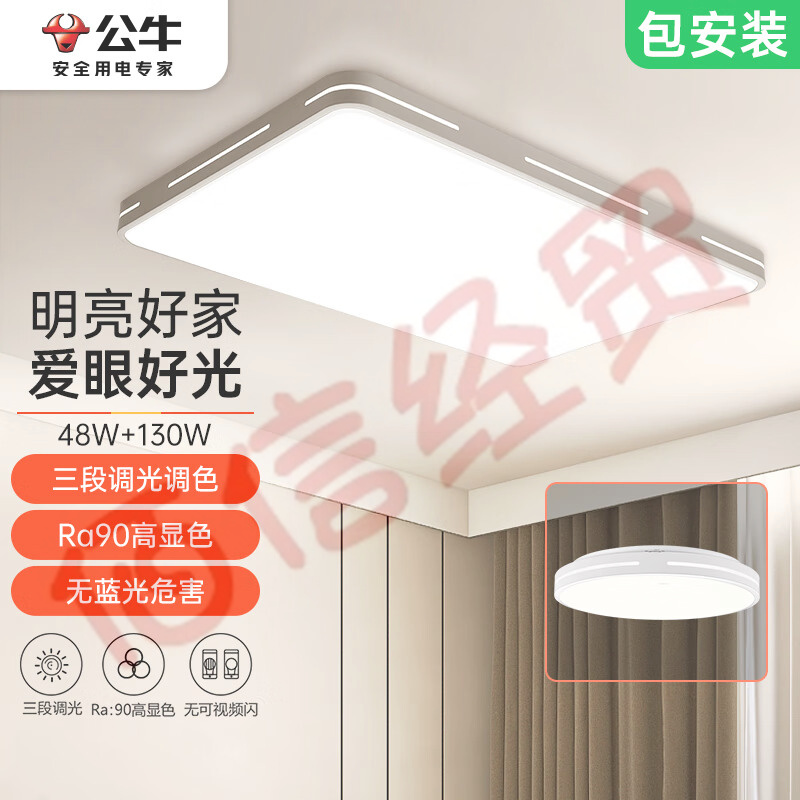 公牛(BULL)吸顶灯 明皓MX-C130E-BS客厅灯全屋灯北欧现代简约三段调光款130W+48W套装 自营