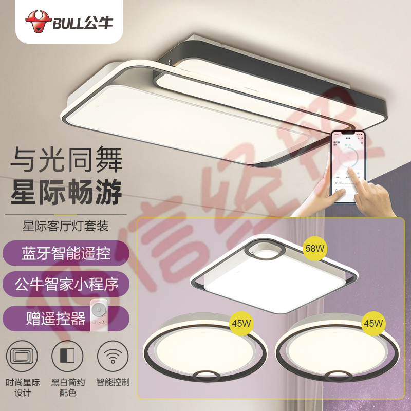 公牛(BULL)LED吸顶灯X36星际MX-M130B-CD无线遥控/小程序智能控制/无极调光灯具 :客厅灯+方形灯+卧室灯*2 自营