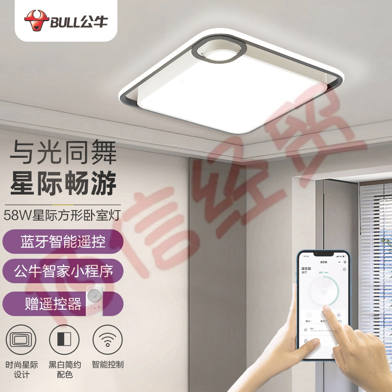 公牛(BULL)智能吸顶灯 X36星际系列 遥控器小程序控制MX-M060B-CD客厅灯卧室灯 无极调光/三档调色 58W 自营