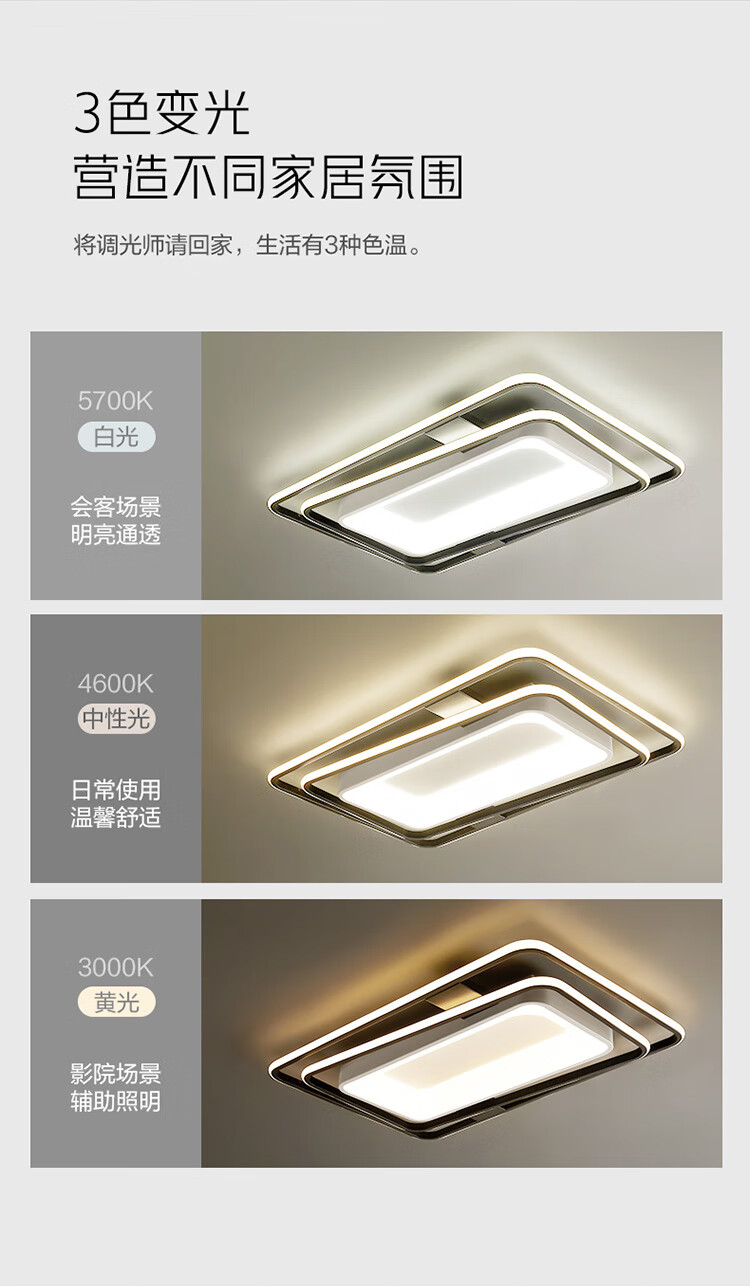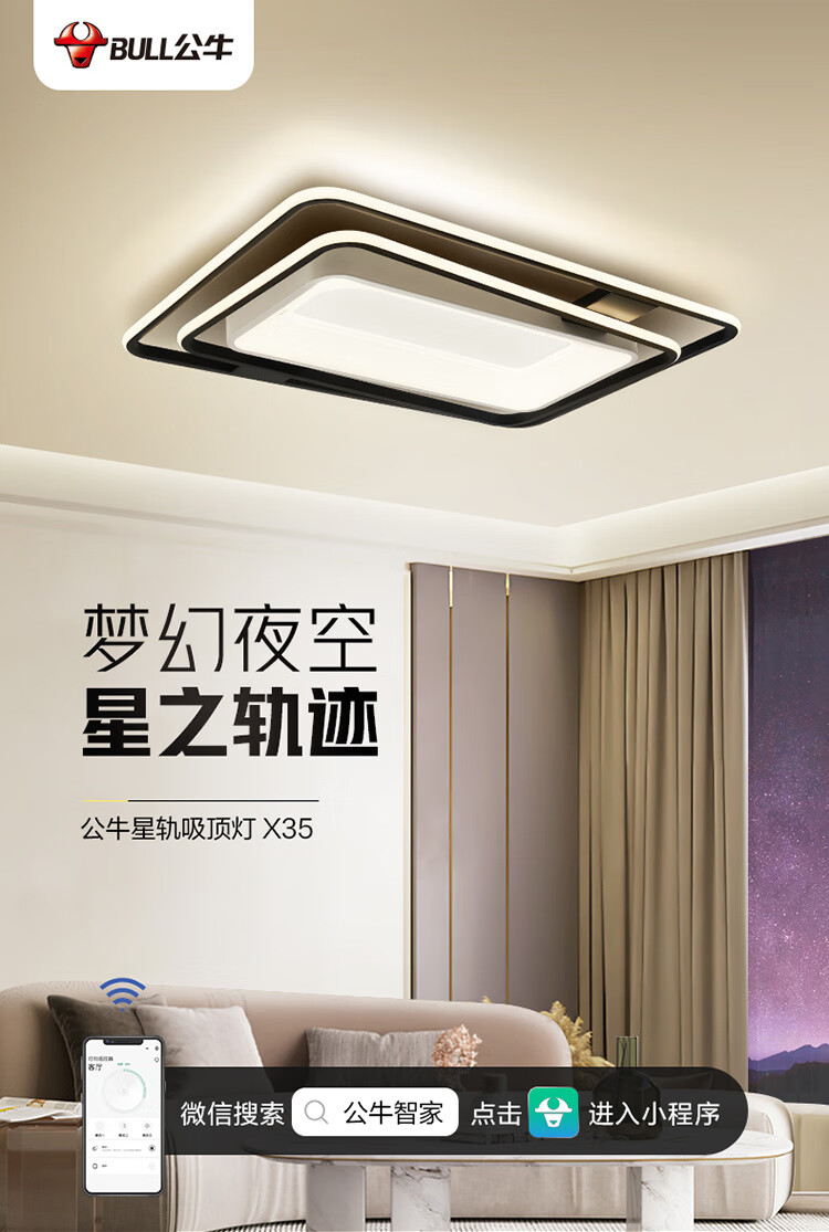 公牛(BULL)LED吸顶灯X35星轨系列MX-M130A-CD遥控器小程序控制无极调光/三档调色 客厅灯+方形灯+圆形灯*3 自营