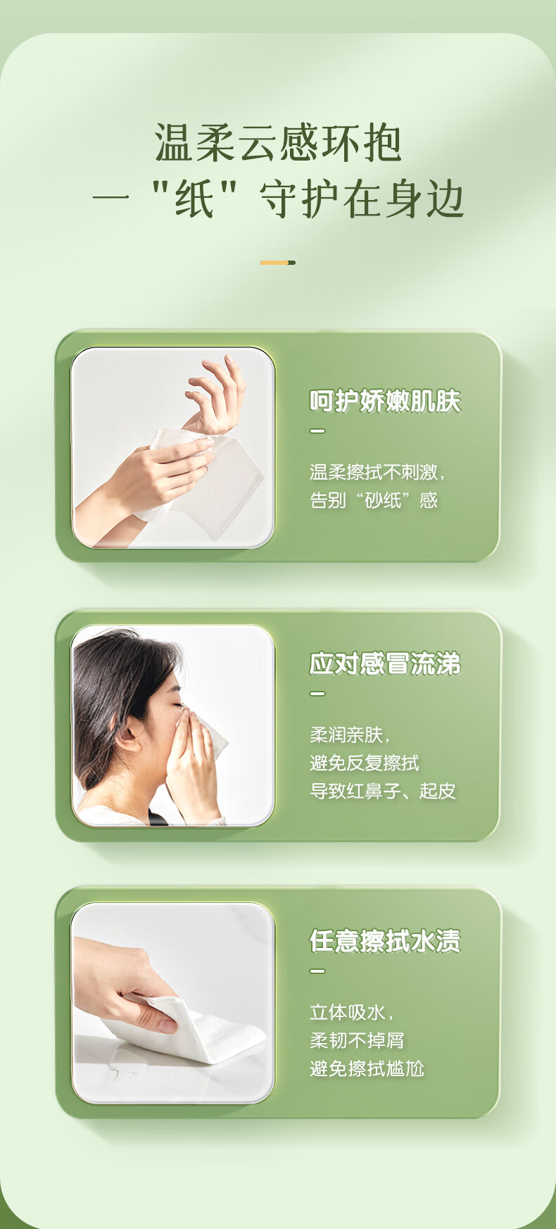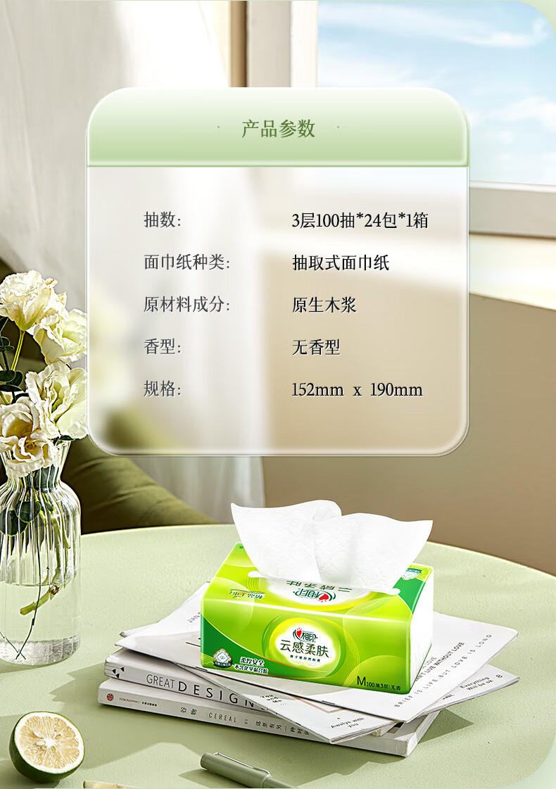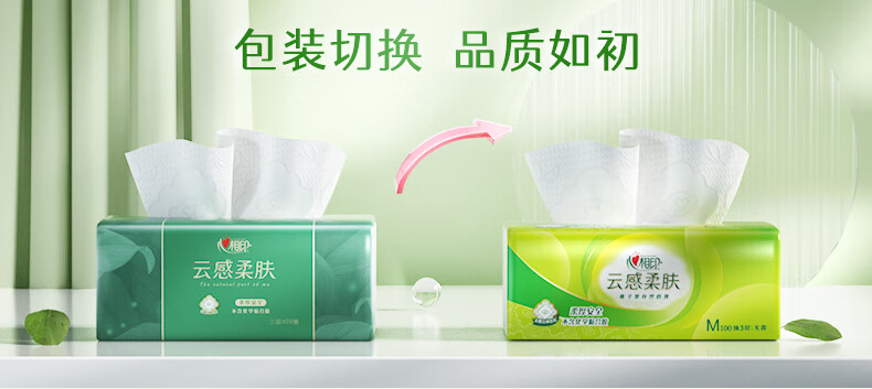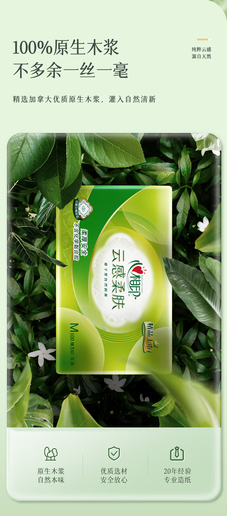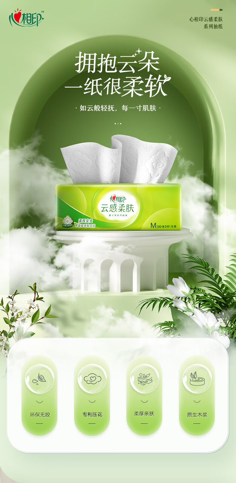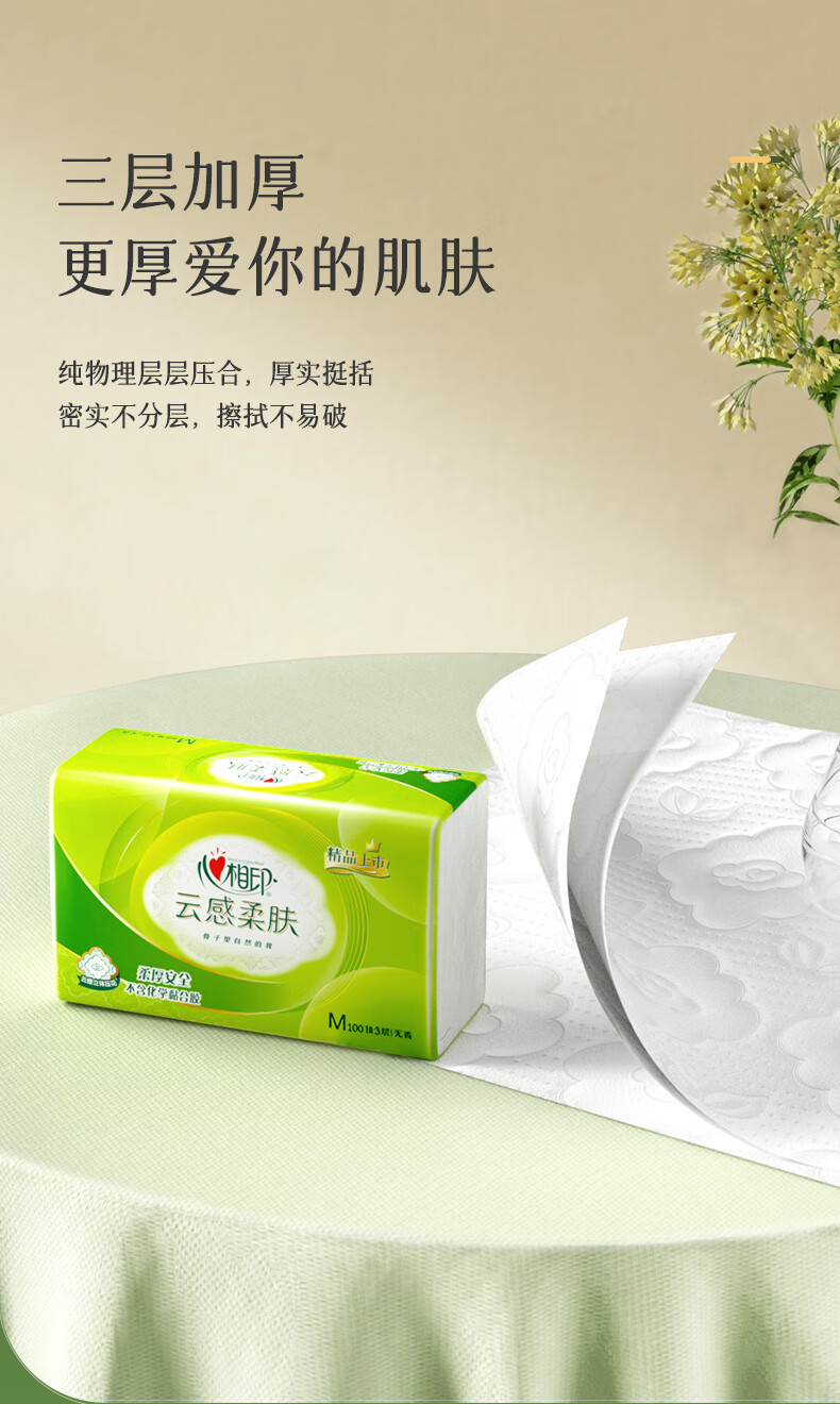 心相印抽纸 云感柔肤 真M码3层100抽*24包 纸巾(整箱销售) 自营