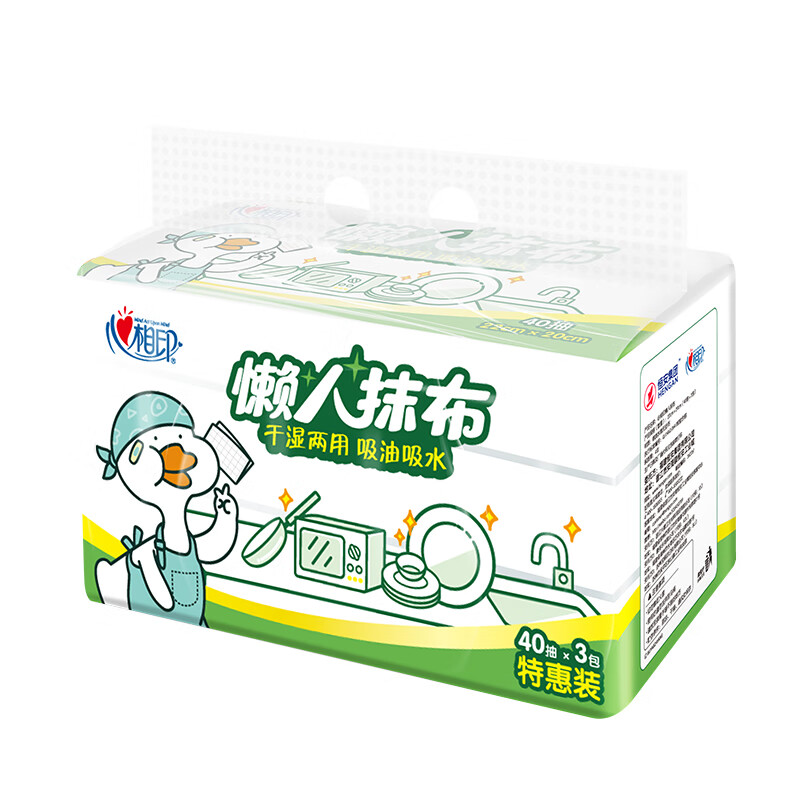 心相印 不鸭懒人抹布厨房一次性抹布厨房用纸抽取式40抽*3包共120抽 自营