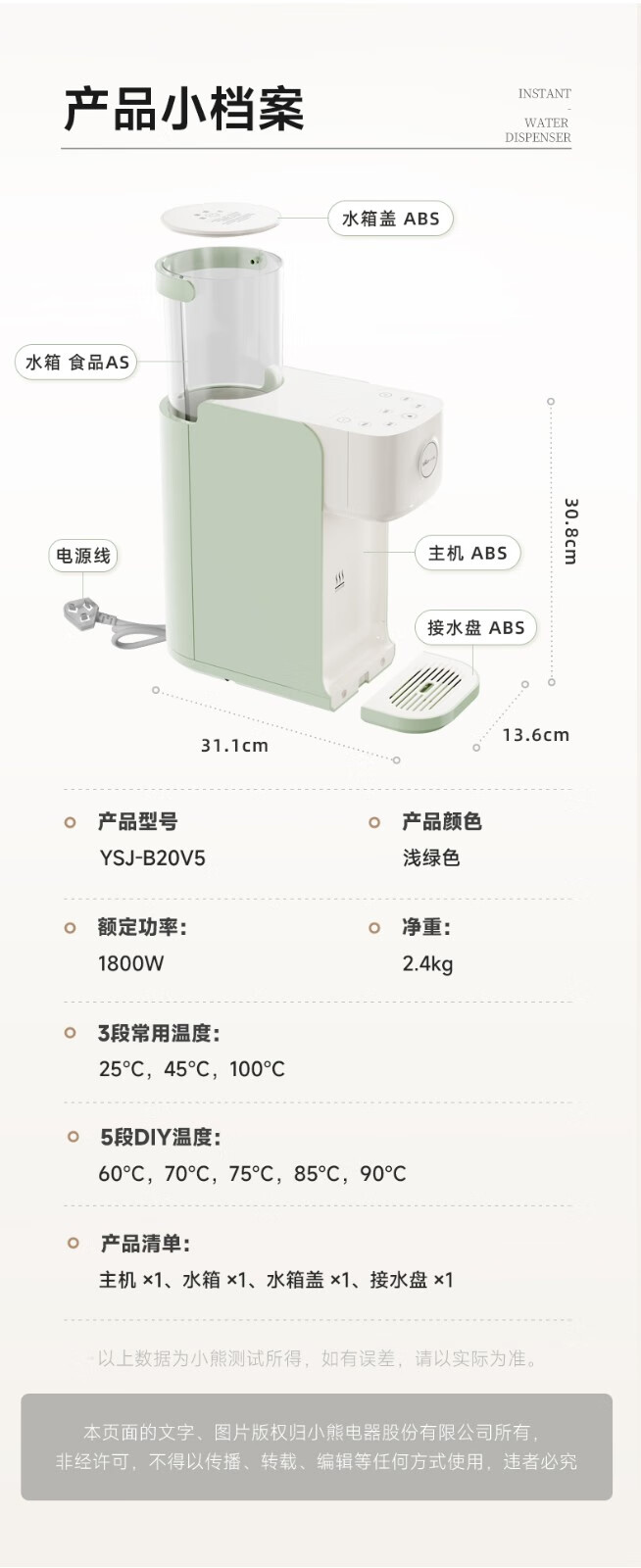 小熊(Bear) 饮水机家用即热式饮水机净饮一体机饮用水小型茶吧机烧水机台式家用 【升级款】速热丨矿物质滤芯YSJ-B20V5 自营