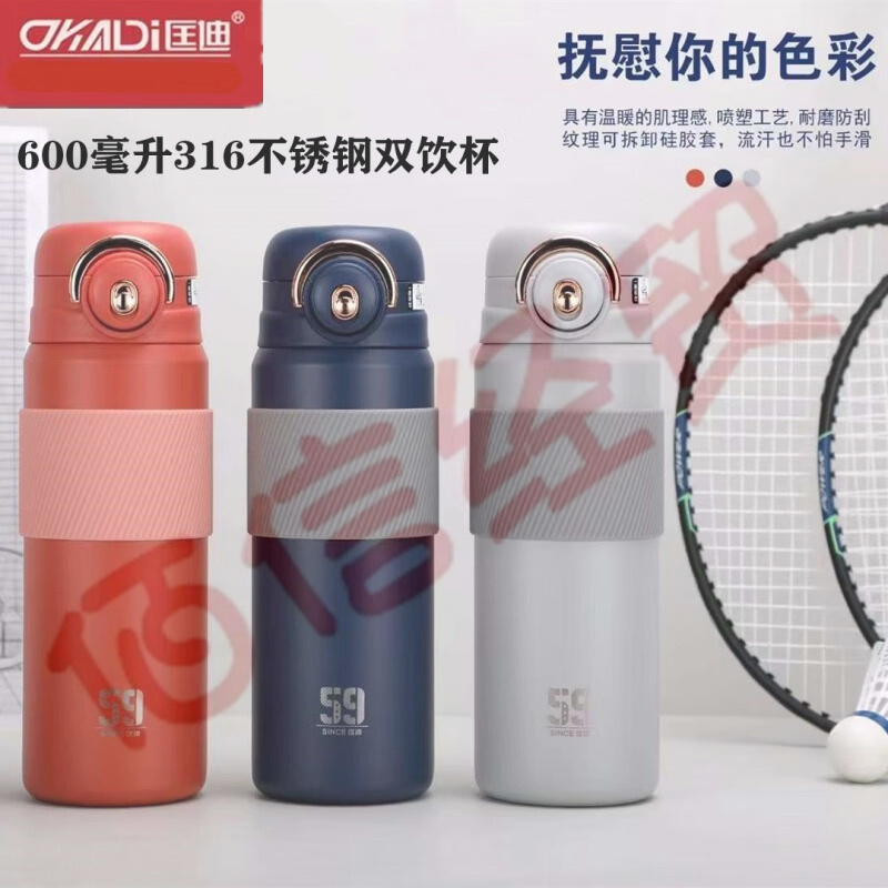 匡迪(DKADI)匡迪保温杯大容量男女吸管杯户外双饮口便携水杯316不锈钢 600毫升幽黛蓝 600毫升 自营