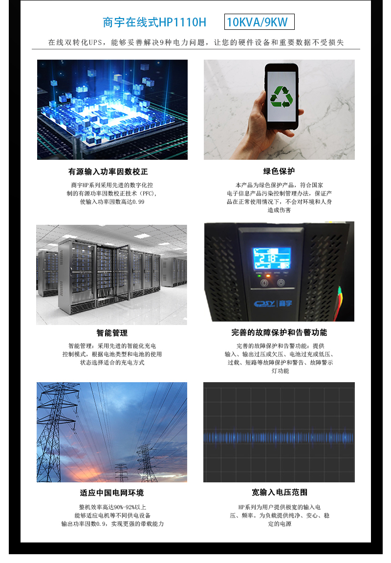 商宇(CPSY)S1000-12V-LCD 后备式UPS不间断电源9AH电池家用电脑办公600W断电保护器智能续航30分钟