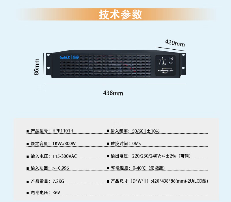 商宇UPS不间断电源 HPR1101H机架式主机1000VA/800W网络服务器电源机房 自营