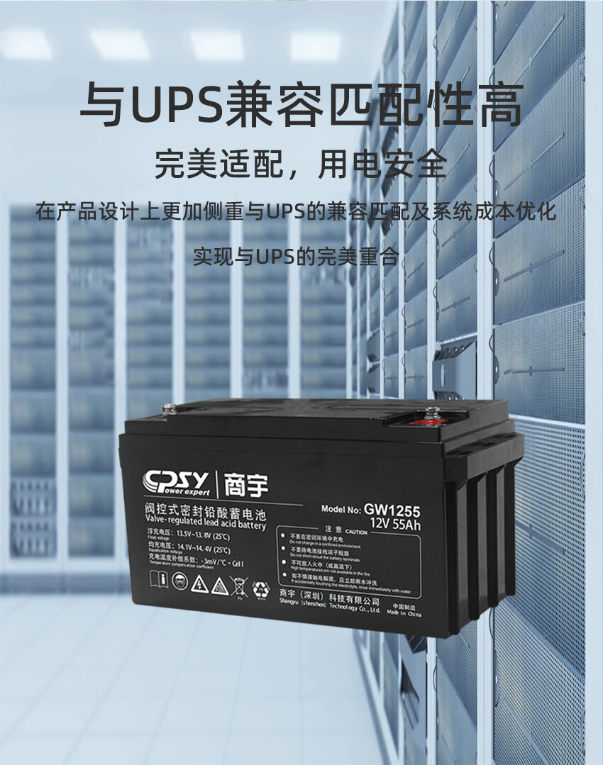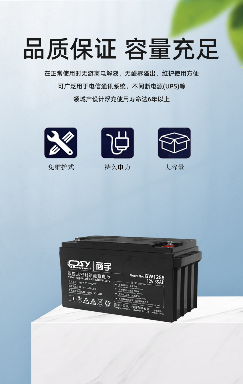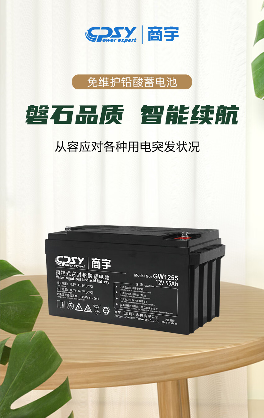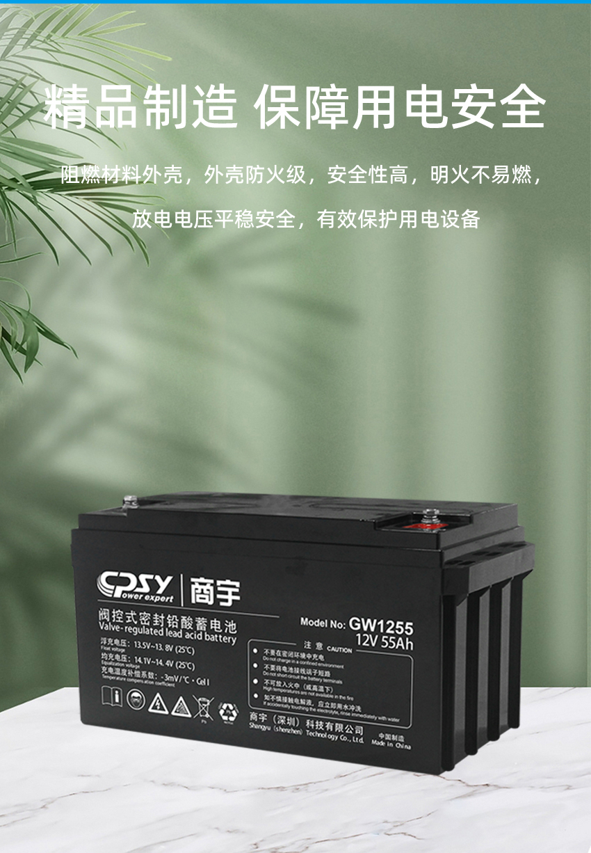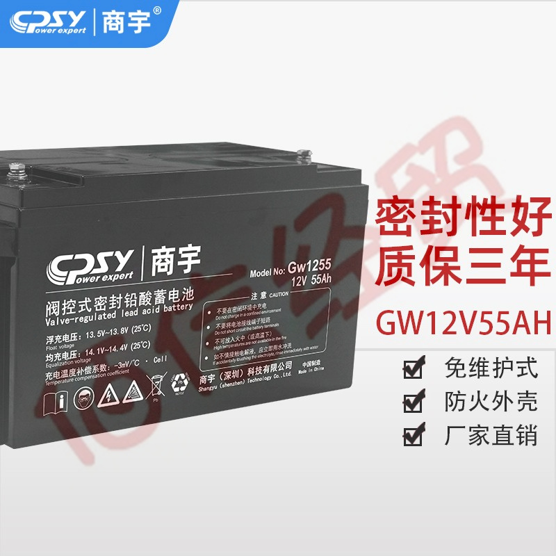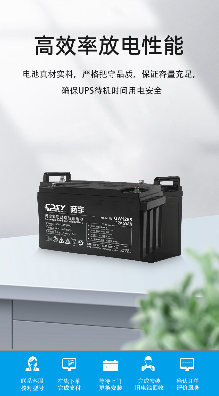 商宇GW12V55AH 阀控式密封铅酸蓄电池 机房服务器断电续航备用电源 UPS不间断电源专用蓄电池 自营