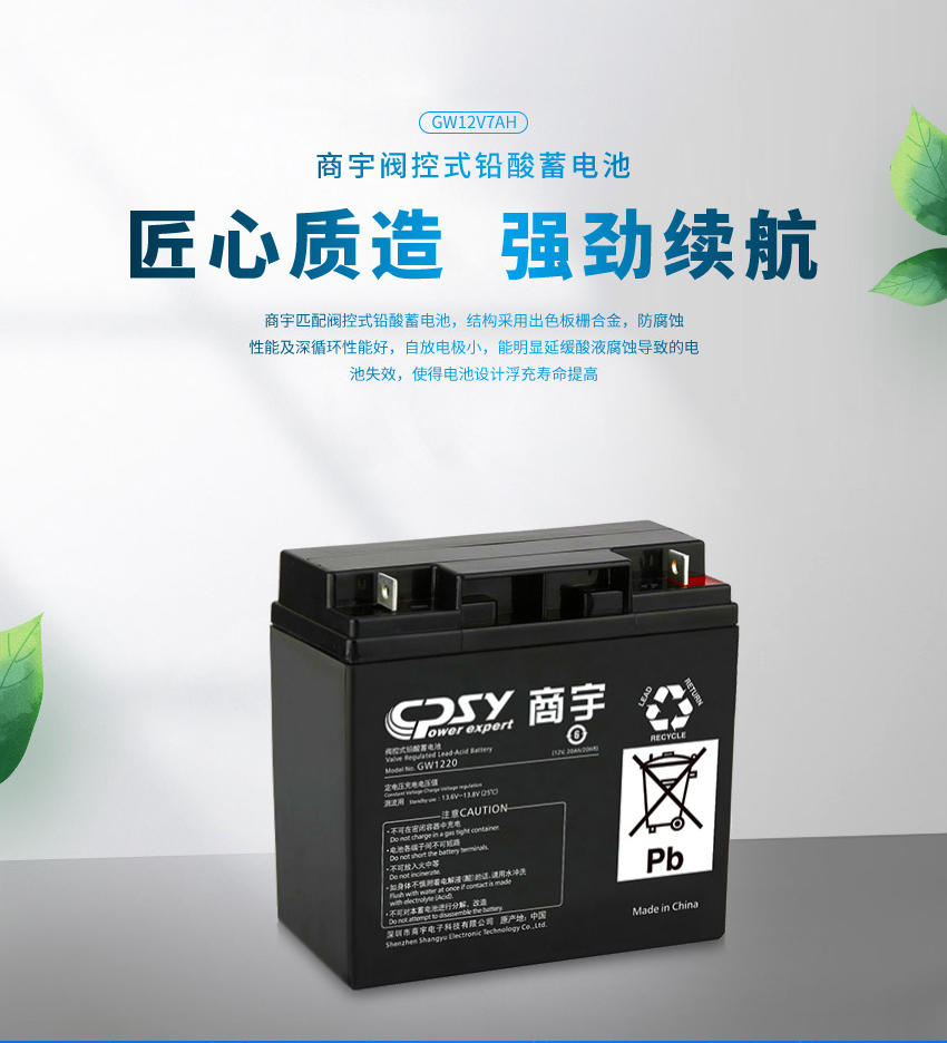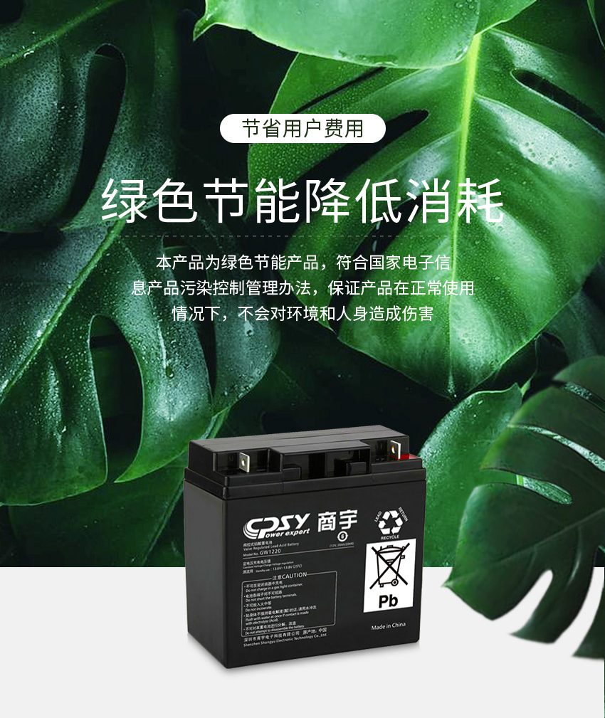 商宇(SY)商宇UPS不间断电源 电池 GW12V20AH 高密度节能免维护阀控式铅酸蓄电池 自营