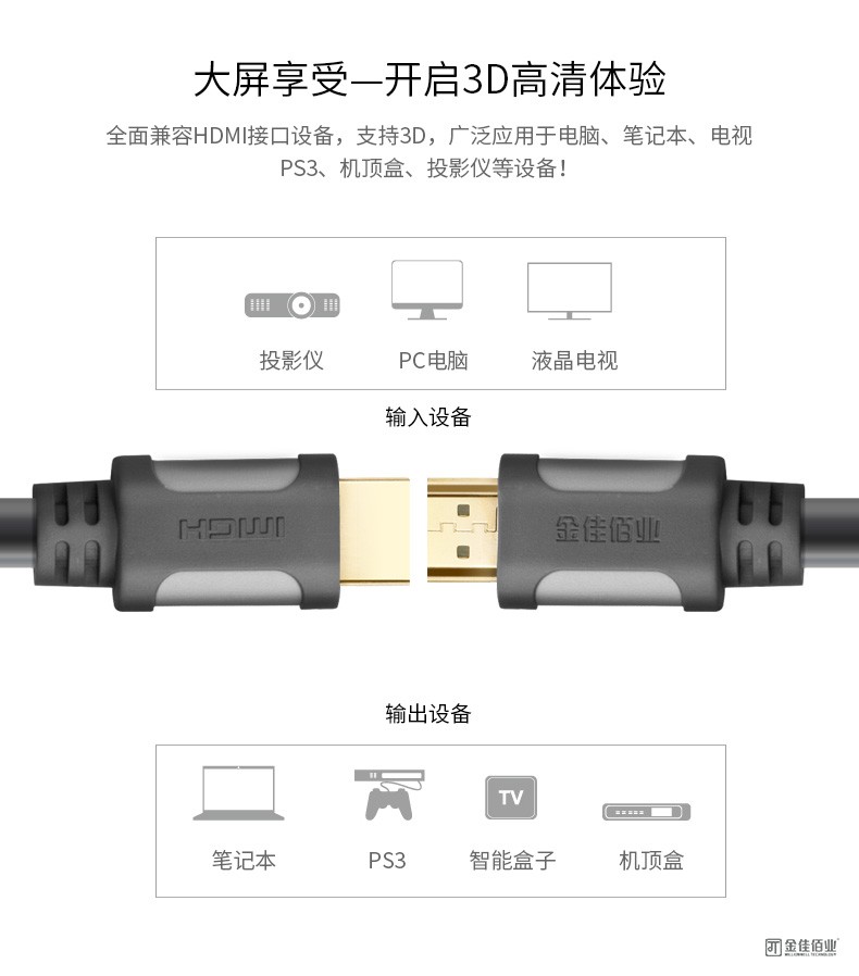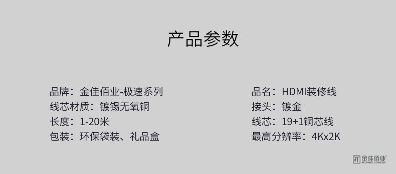金佳佰业(Millionwell) 金佳佰业HDMI线1.4高清线4K60hz显示器连接线1080P 20米 自营