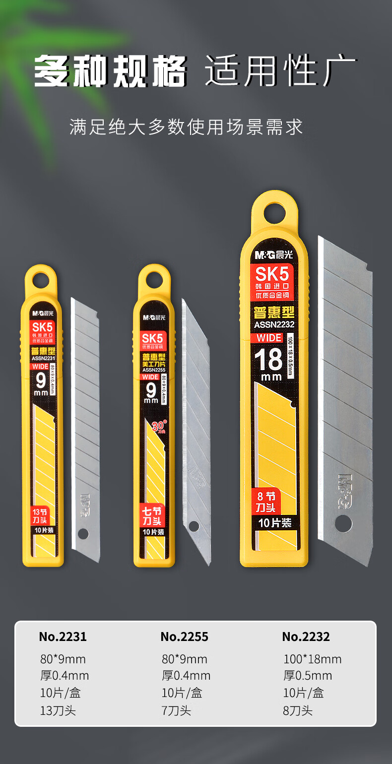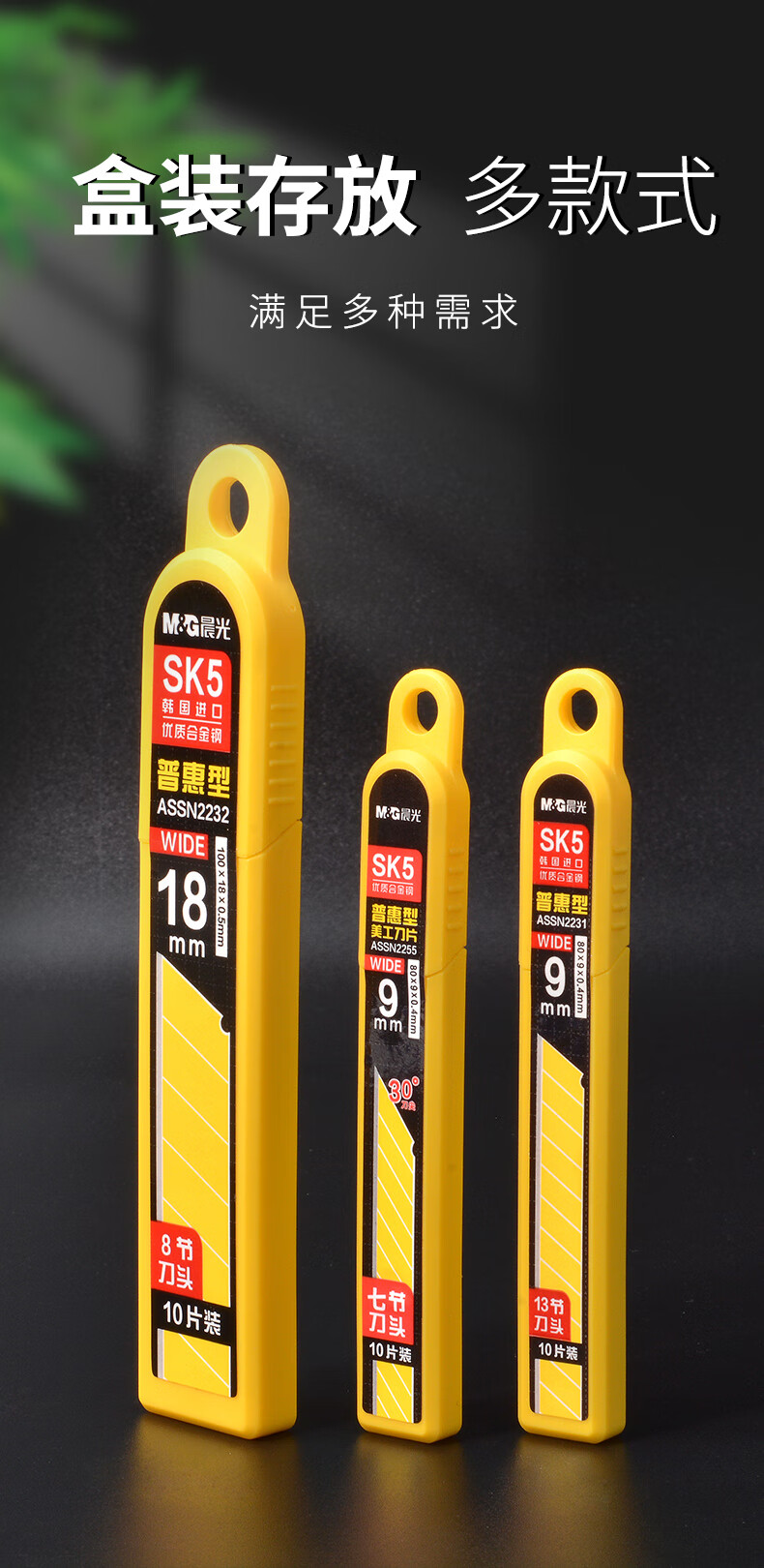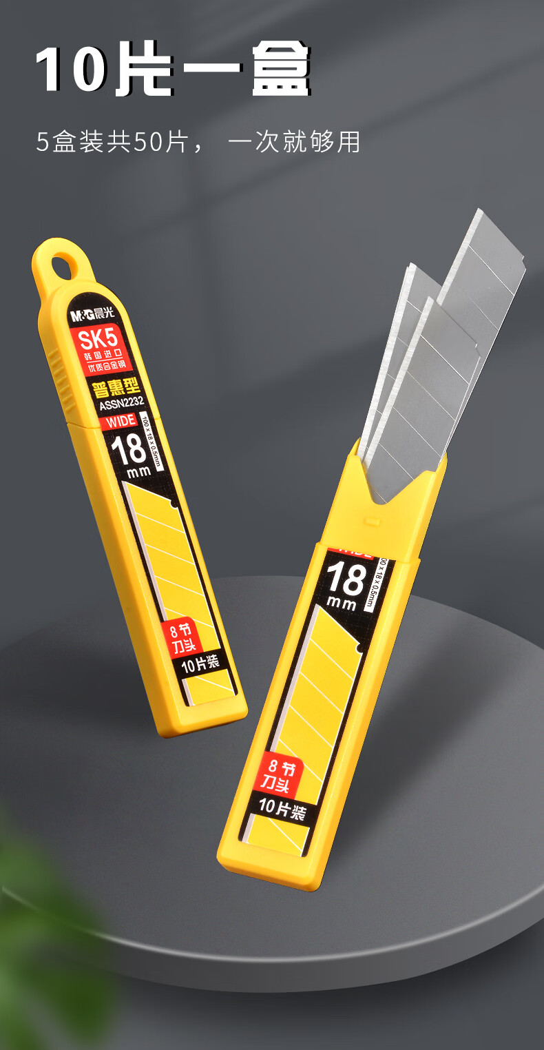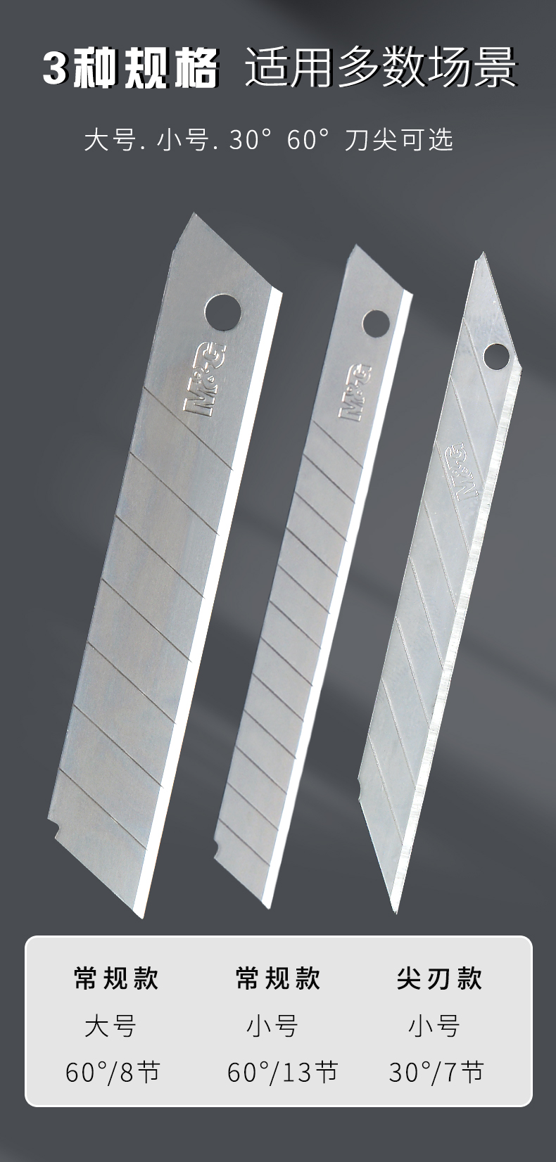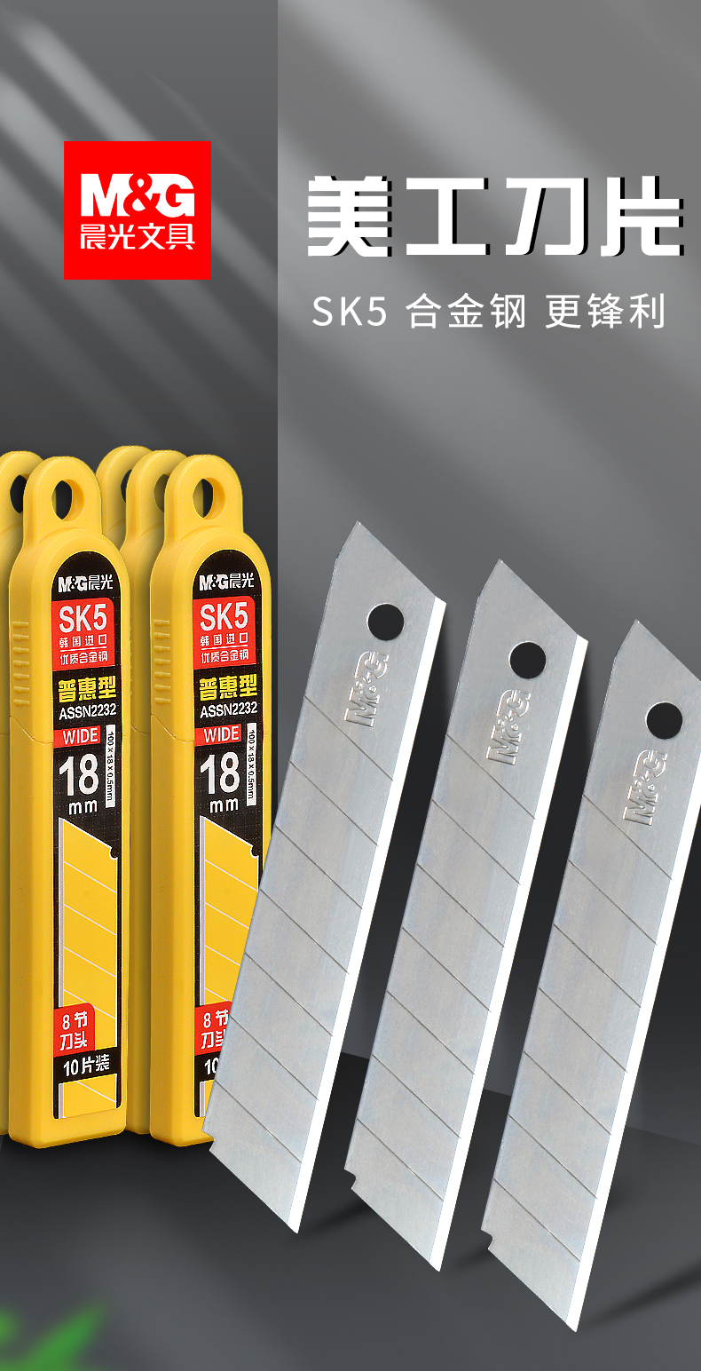 晨光(M&G)大号美工刀片18m钛精钢SK5不易生锈普惠型替换刀片ASSN2232 3盒共30片【大号刀片18mm/60度】 自营