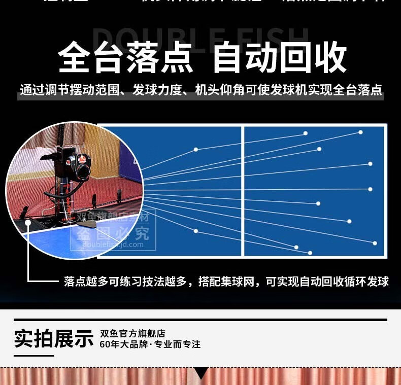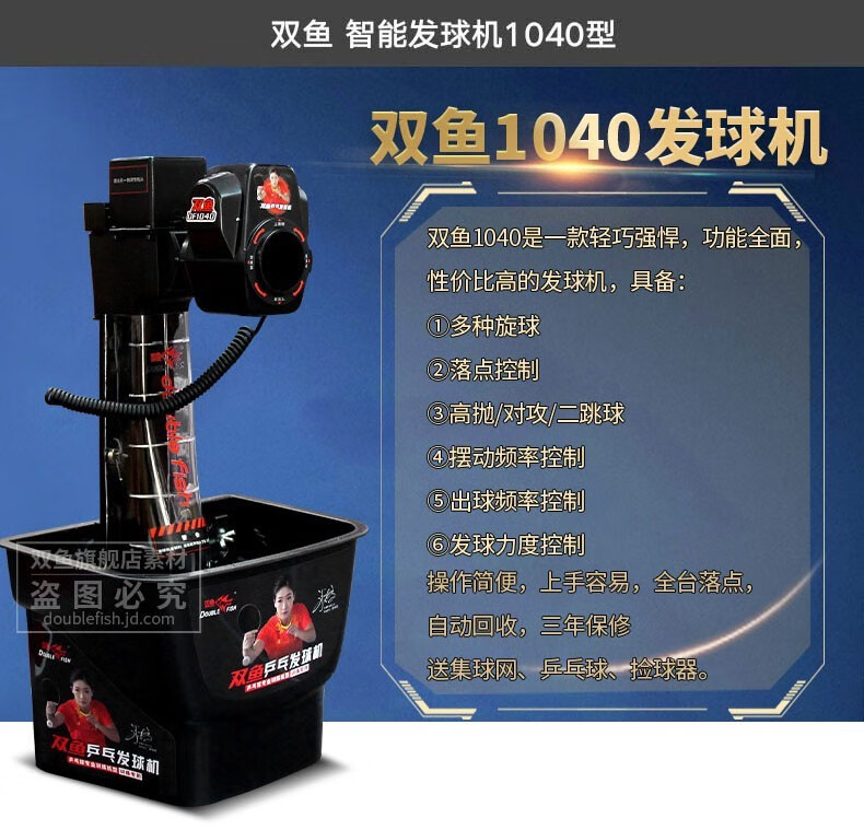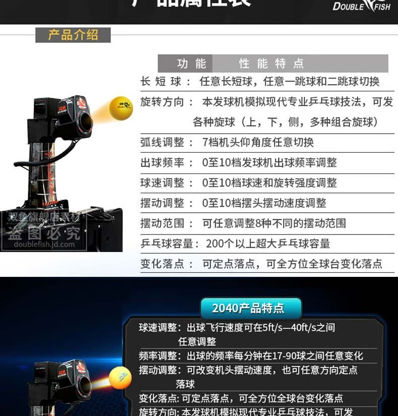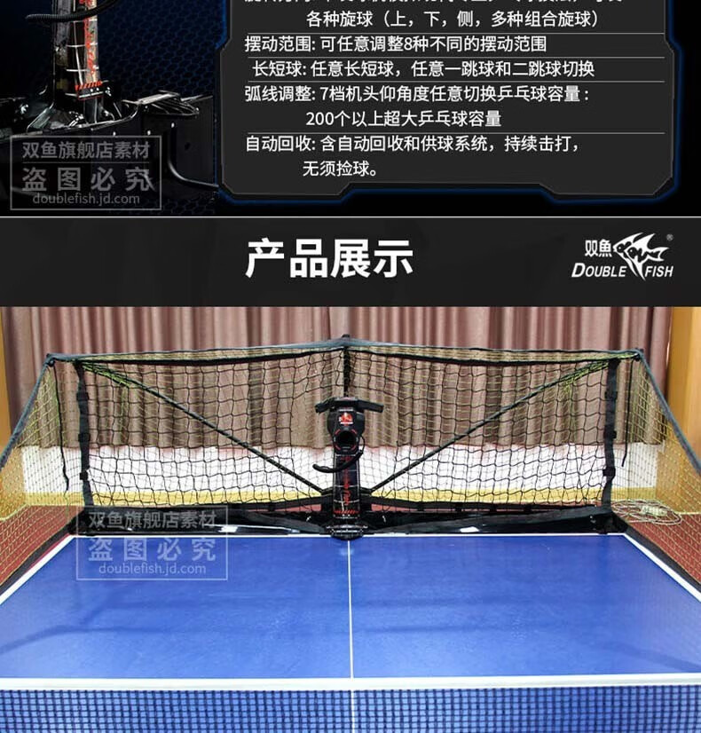 双鱼(DOUBLE FISH)乒乓球发球机 专业乒乓球训练器智能发球器 带集球网可回收 2050 自营