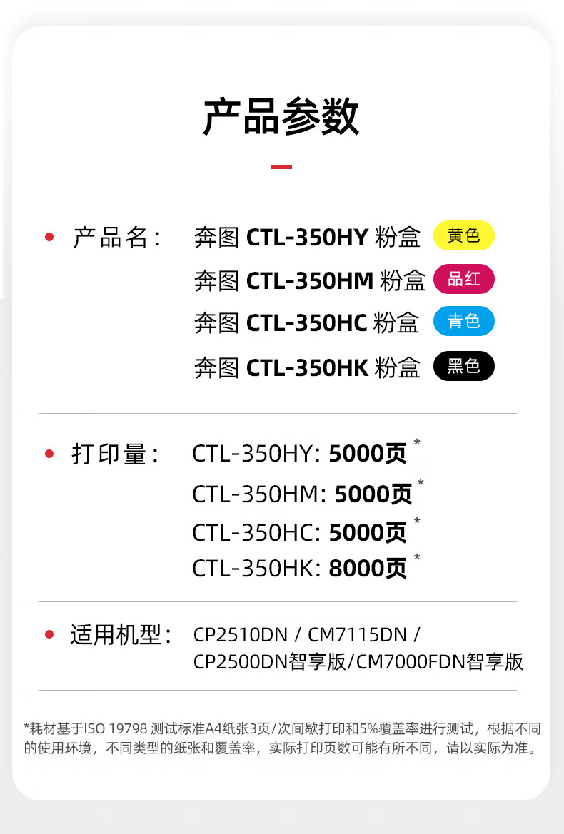 奔图(PANTUM)CTL-350HK/C/M/Y粉盒4色套装适用于CP2510DN/CM7115DN/CP2500DN/CM7000FDN智享版打印机硒鼓墨盒 自营