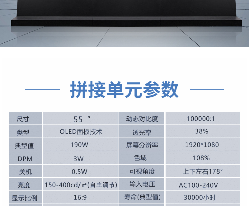 聚徽 55英寸OLED透明拼接屏升降立式高清自发光商用触摸广告显示屏展厅展馆多媒体超薄双面透明屏单片 自营