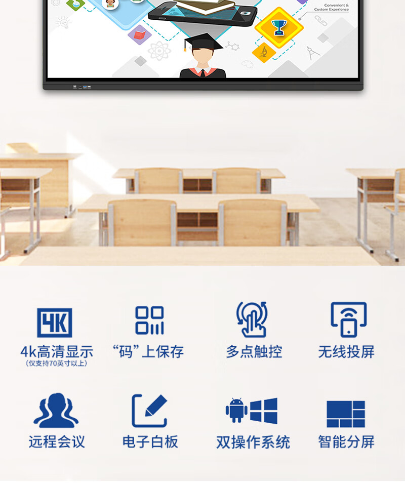聚徽 65英寸智能会议平板 多媒体教学一体机触摸屏学校幼儿园培训电子白板壁挂电脑触控屏显示器I5,4G,128G 自营