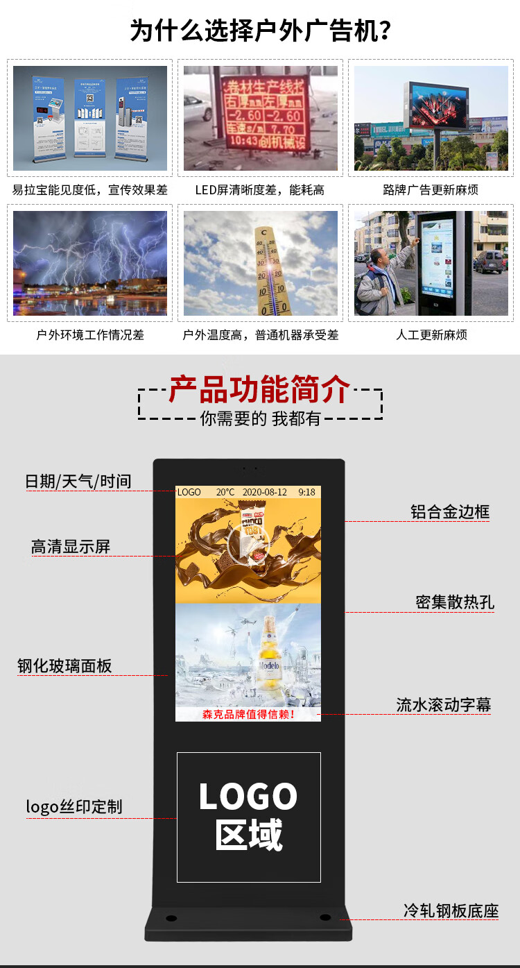 聚徽 户外广告机 室外壁挂高亮多媒体触摸一体机播放器 100英寸防水防雷防盗高清液晶显示屏 智能数字标牌(其它尺寸咨询客服) 自营