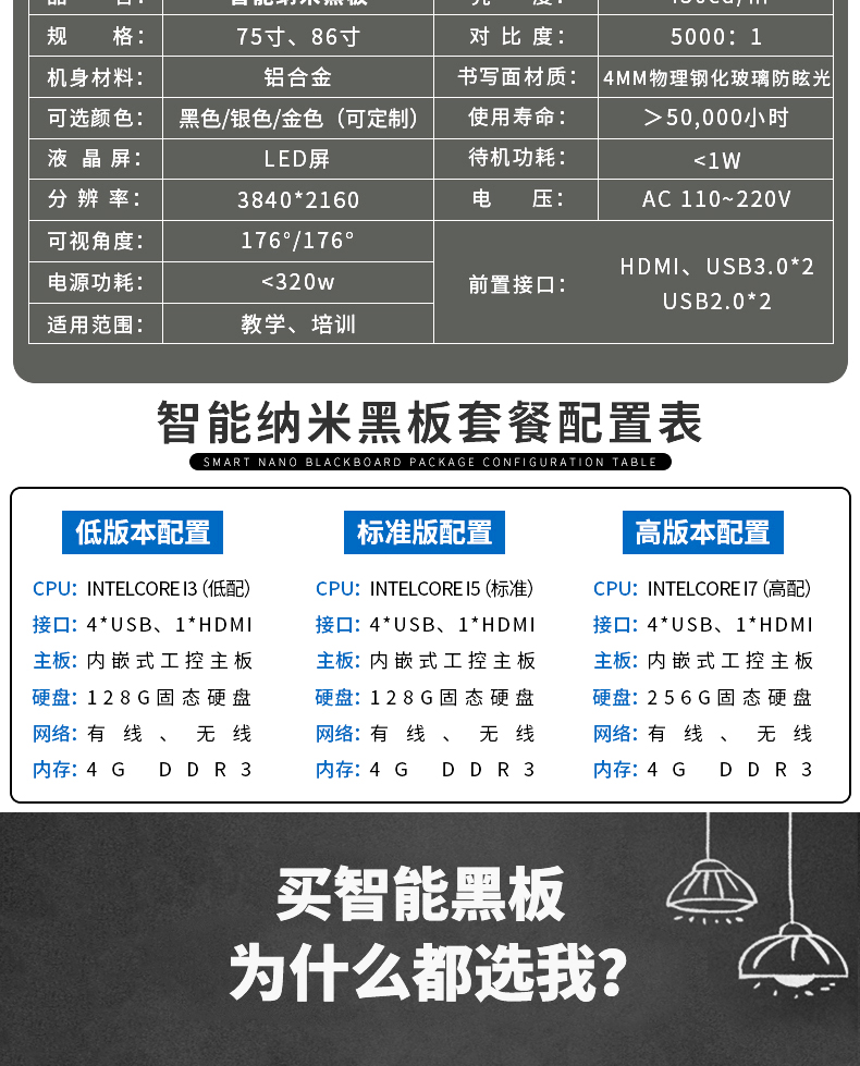 聚徽 智慧纳米黑板多媒体教学一体机学校教室触控电子白板高清会议培训智能电容触摸一体机75英寸双系统 自营