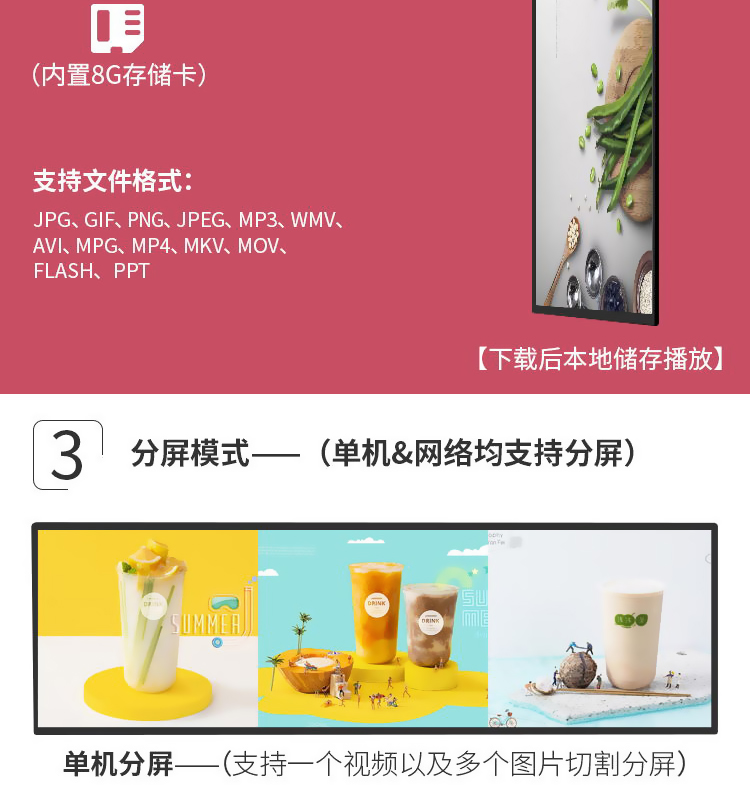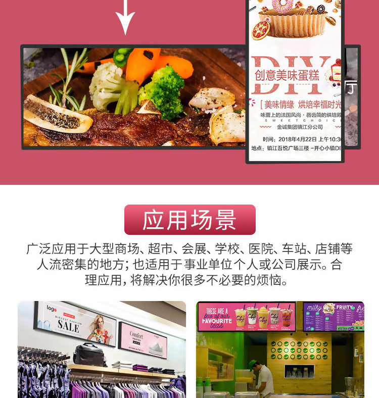 聚徽 条形屏广告机货架屏LED触摸屏地铁车载条形液晶屏数字标牌长方形显示屏定制lcd切割屏 88英寸(其它尺寸咨询客服) 自营