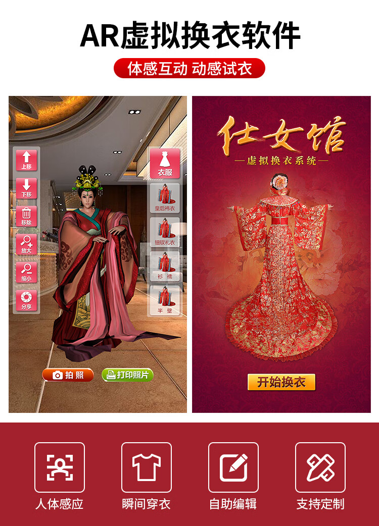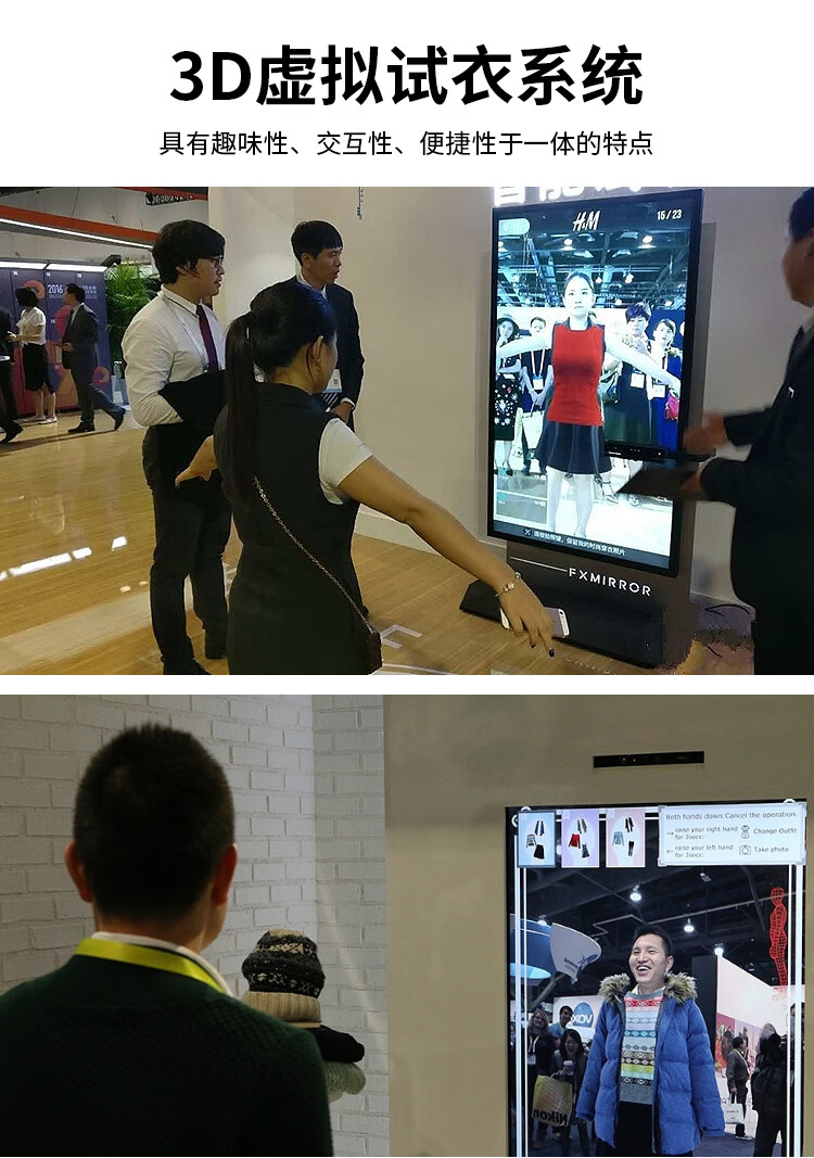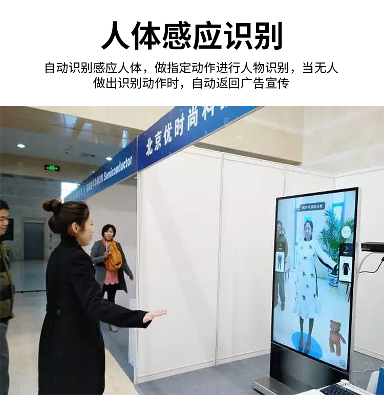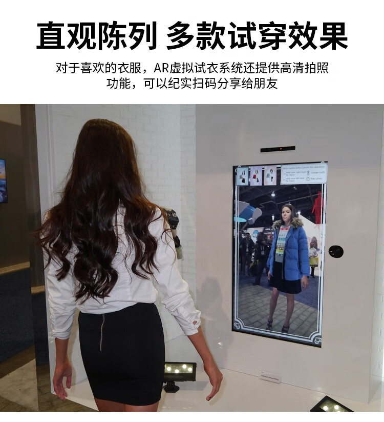 聚徽 互动体感试衣镜智能魔镜触摸屏显示器AR换衣2D3D试衣软件系统商场体验店服装店一键试穿 55吋3D体感版 自营