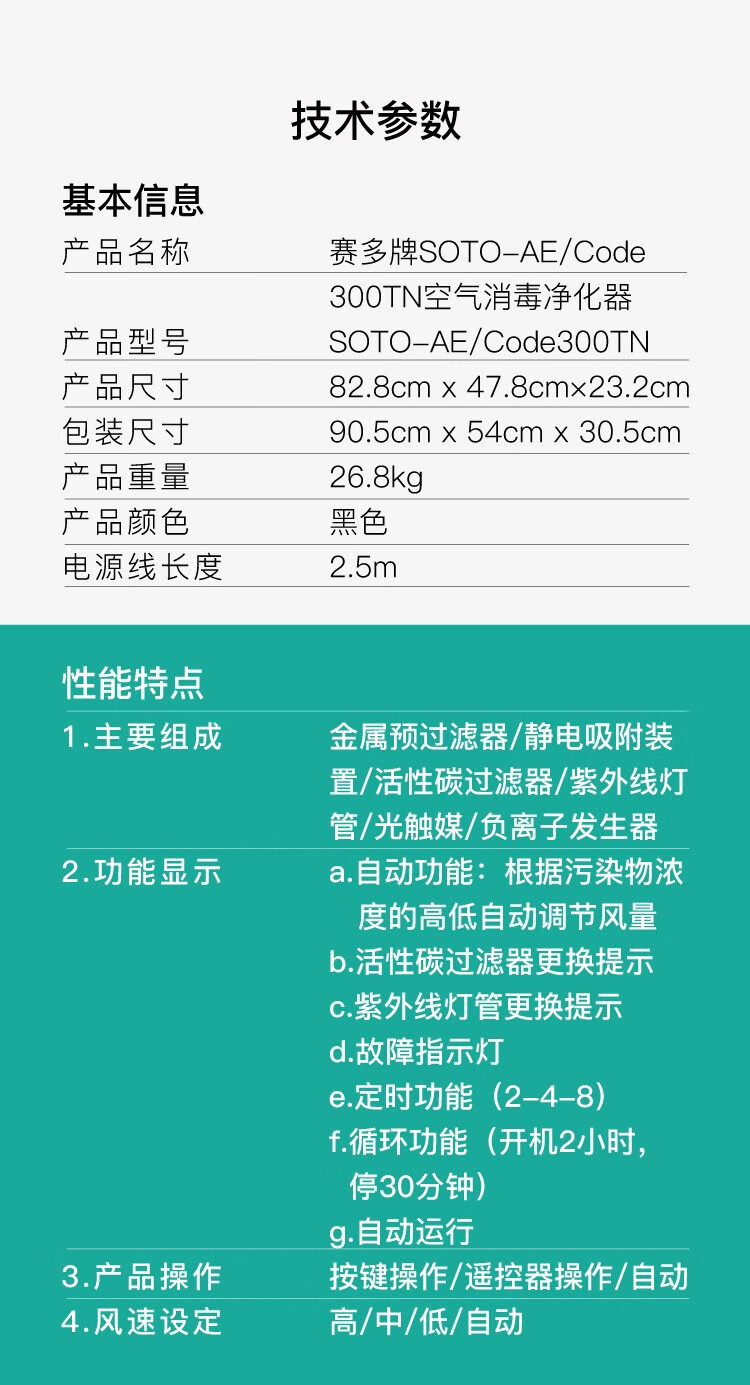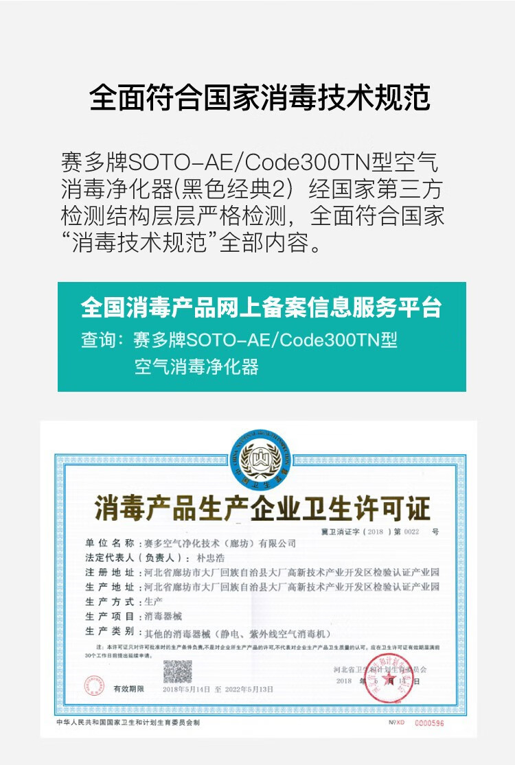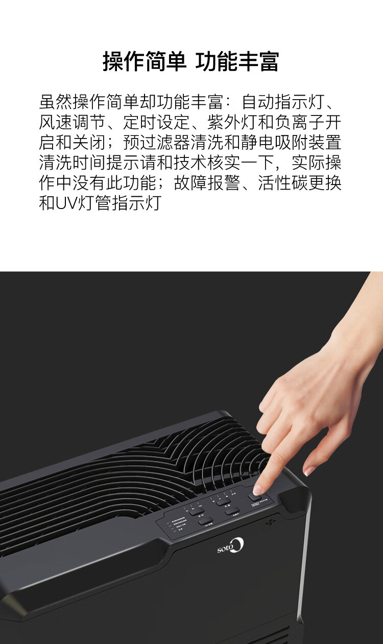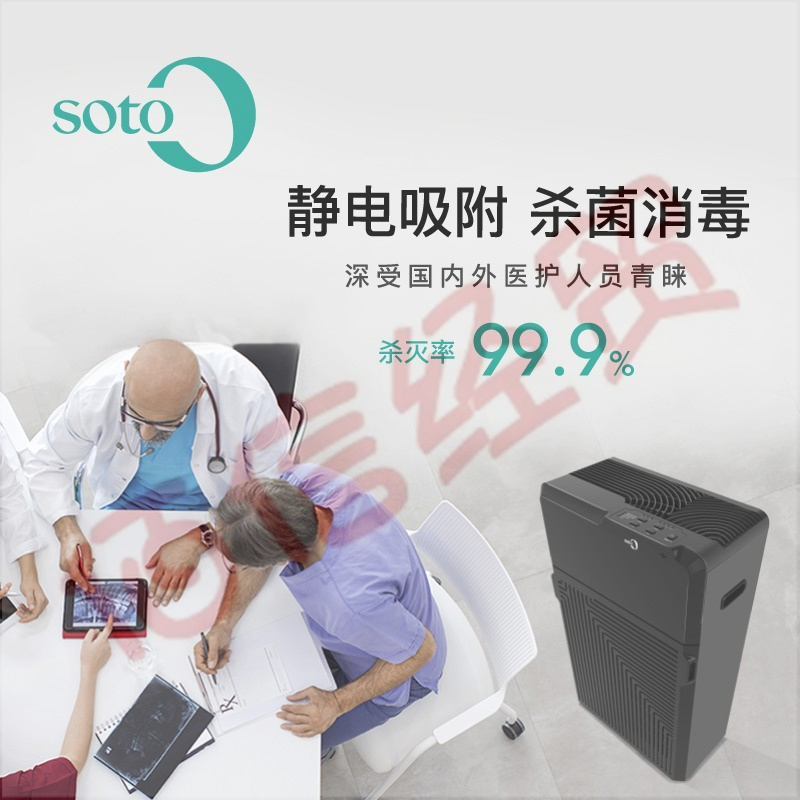 赛多SOTO黑色经典2空气消毒净化器 静电吸附紫外线杀菌 300TN 黑色 自营