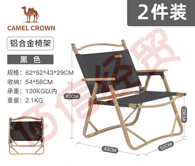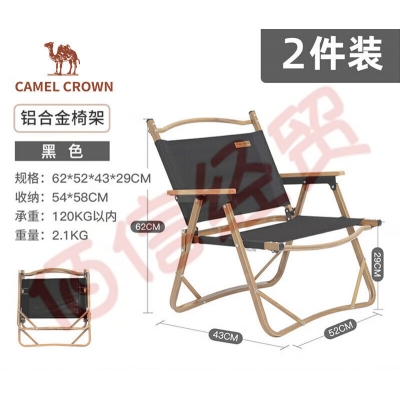 骆驼CAMELCROWN 户外露营轻便携折叠椅阳台休闲钓鱼椅子野营装备野餐克米特椅 T101-3,黑色(铝合金经典款*2件装) 自营