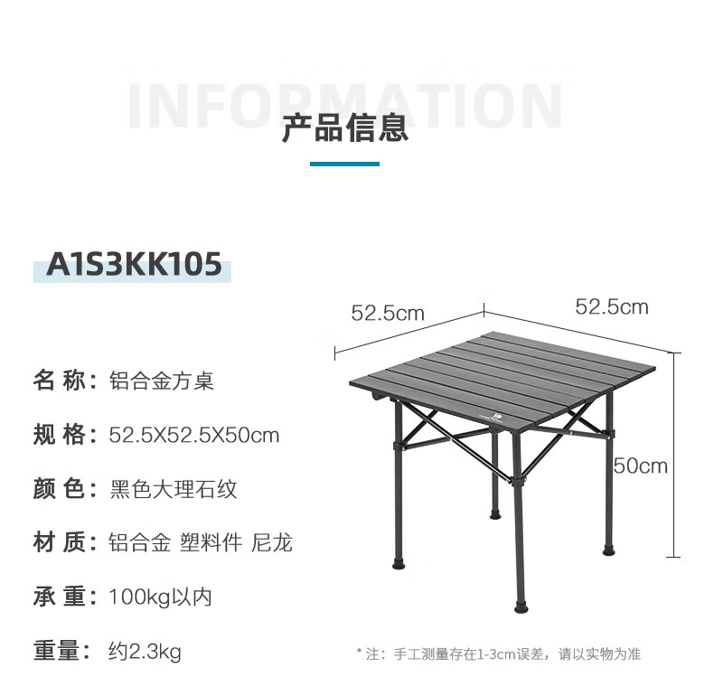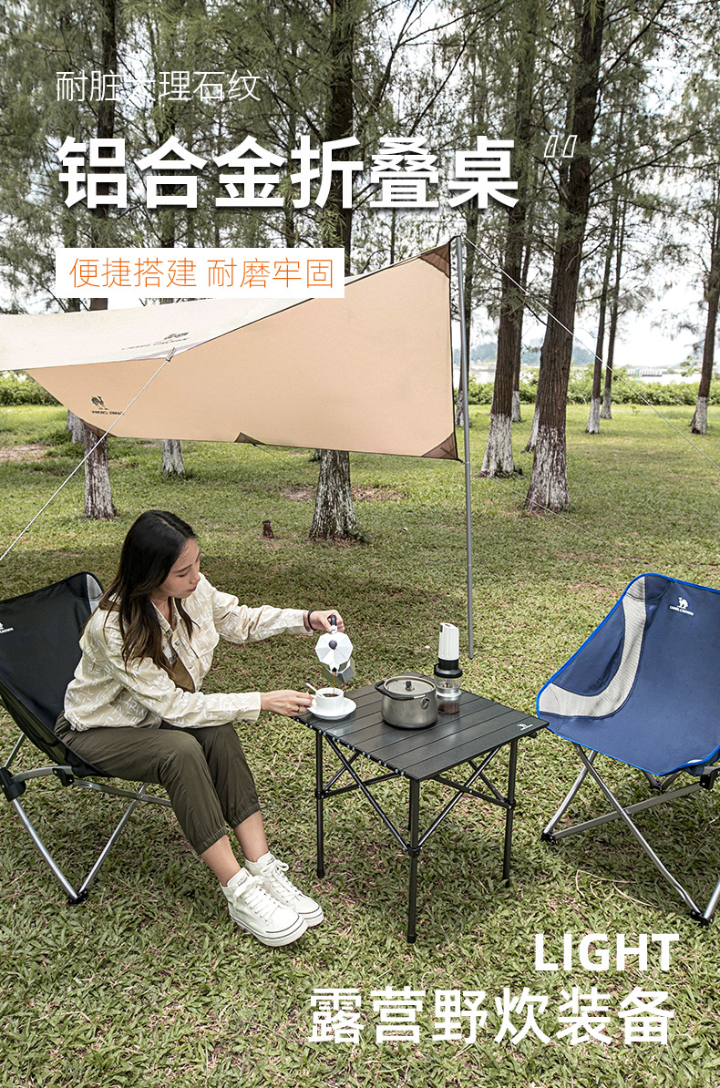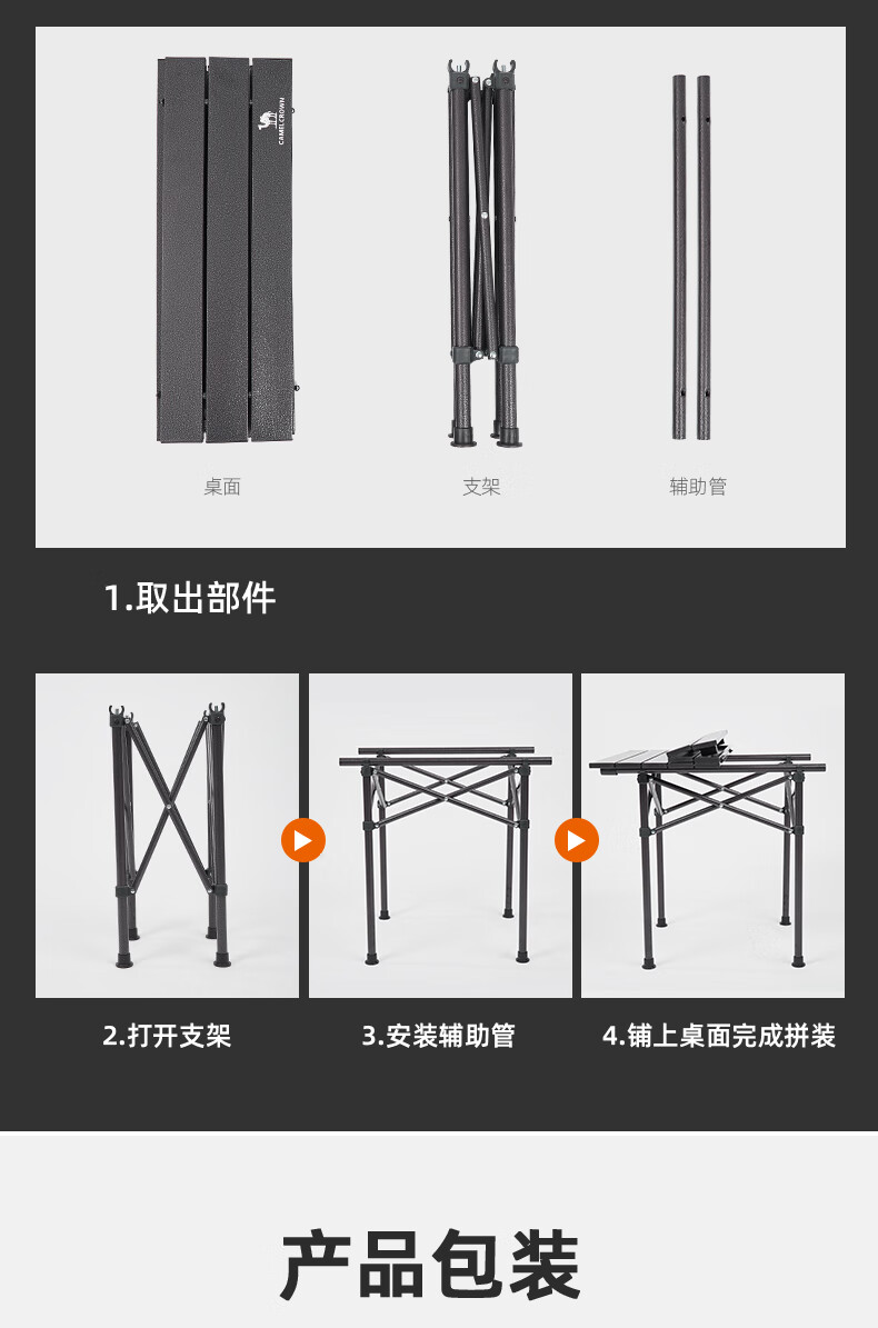 骆驼CAMELCROWN户外折叠桌子露营野餐便携式自驾家用轻便铝合金小蛋卷桌野炊装备 A1S3KK105,黑色大理石纹 自营