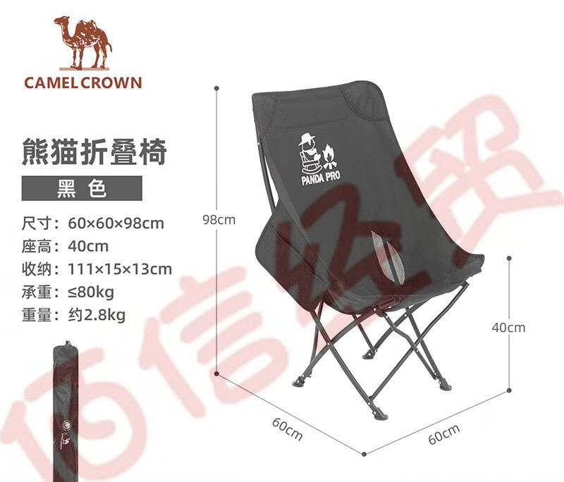 骆驼CAMELCROWN户外月亮椅露营折叠椅子便携式折叠躺椅野餐休闲钓鱼凳折叠月亮椅 1J32267499,黑色 自营