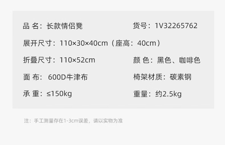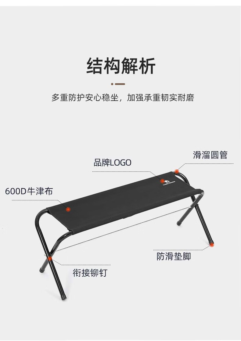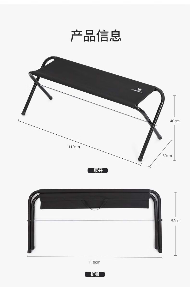 骆驼CAMELCROWN户外露营双人折叠椅子便携超轻马扎野营野餐沙滩长椅轻量化钢管椅 1V32265762,咖啡色 自营