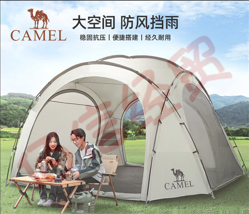 骆驼(CAMEL)户外帐篷球形大空间便携式野营野餐防雨防晒沙滩营地多人帐篷 1V32266283,钛灰 自营