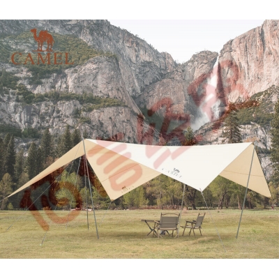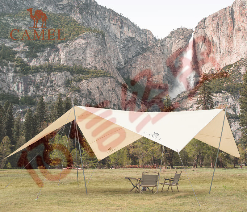 骆驼帐篷户外精致露营涂银防晒UPF50+棉布大型遮阳天幕帐篷便携式防雨野炊野营遮阳棚 1519,流沙金(涤棉布) 自营