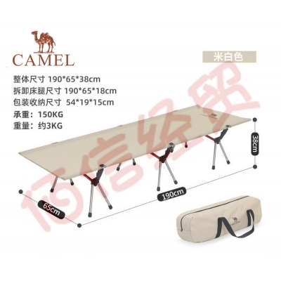 骆驼(CAMEL)户外精致露营折叠床轻量便携车载露营床轻便铝合金单人床 1142253038,米白 自营