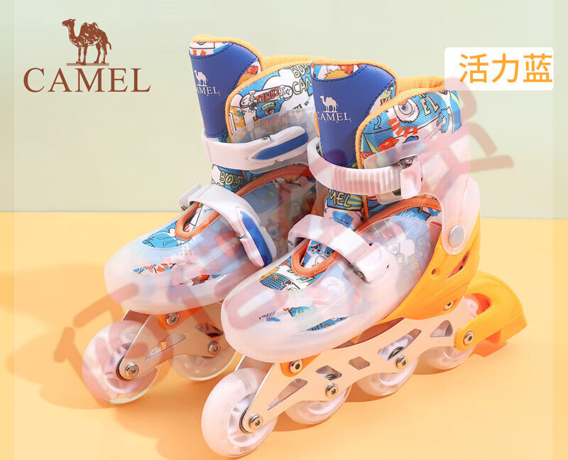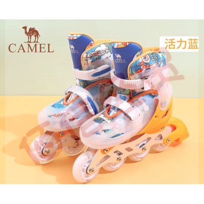 骆驼(CAMEL)轮滑鞋儿童溜冰鞋女童初学者全套滑冰鞋男童旱冰鞋滑轮鞋 活力蓝【鞋+头盔+护具+滑轮包】 L(脚码39-42) 自营
