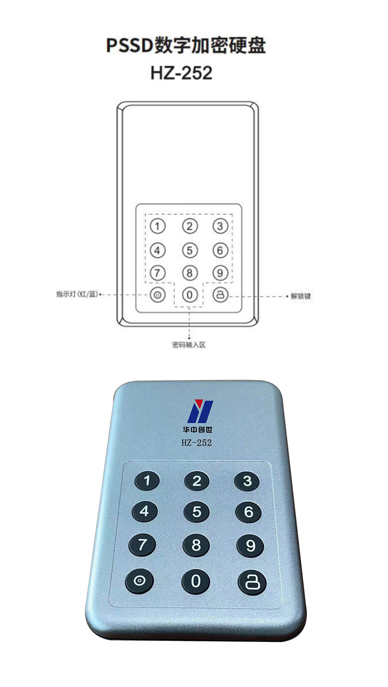 华中创世 HZ-252 PSSD数字加密硬盘 移动硬盘1T 自营