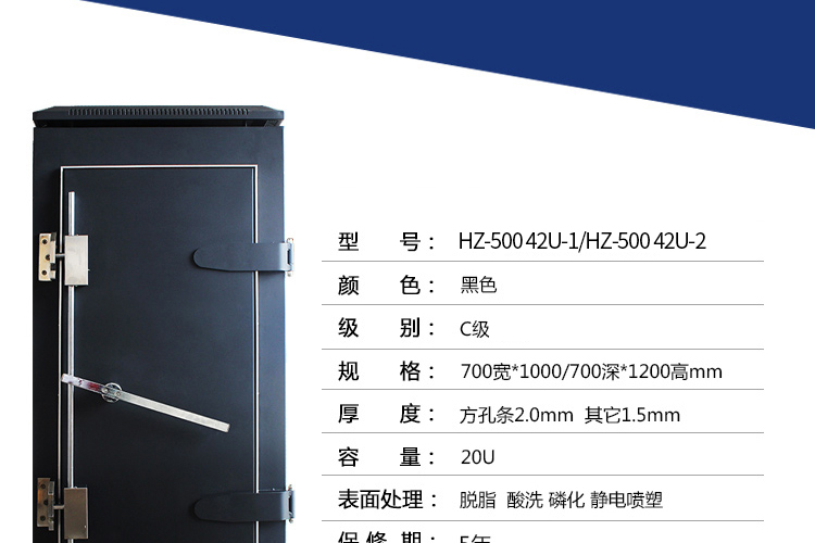 华中创世HZ-500 37U-2 电磁屏蔽机柜 网络服务器屏蔽机柜 电磁屏蔽柜 带密码锁 外形尺寸700mm*1000mm*2000mm 自营