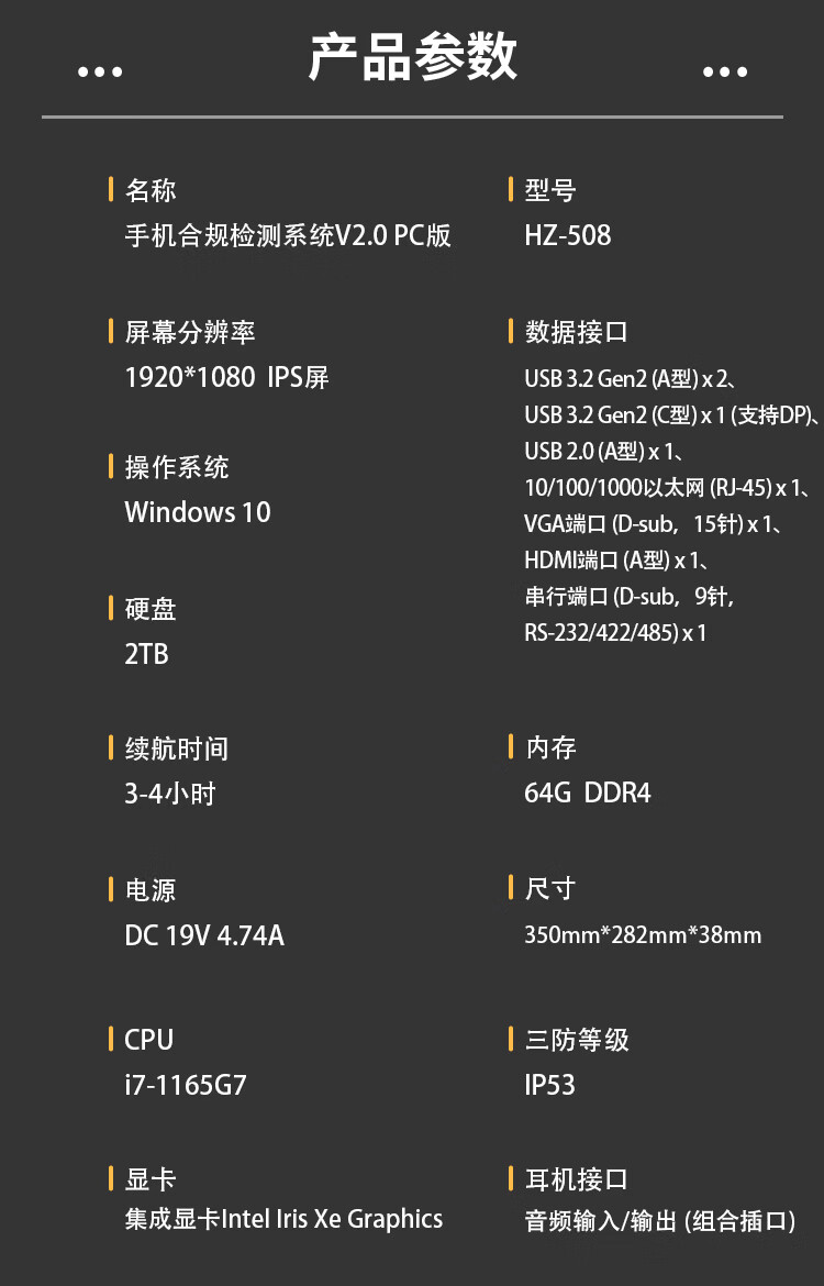 华中创世 HZ-508手机合规点验系统 4路深度分析 20路快速点验 V2.0 PC版 自营