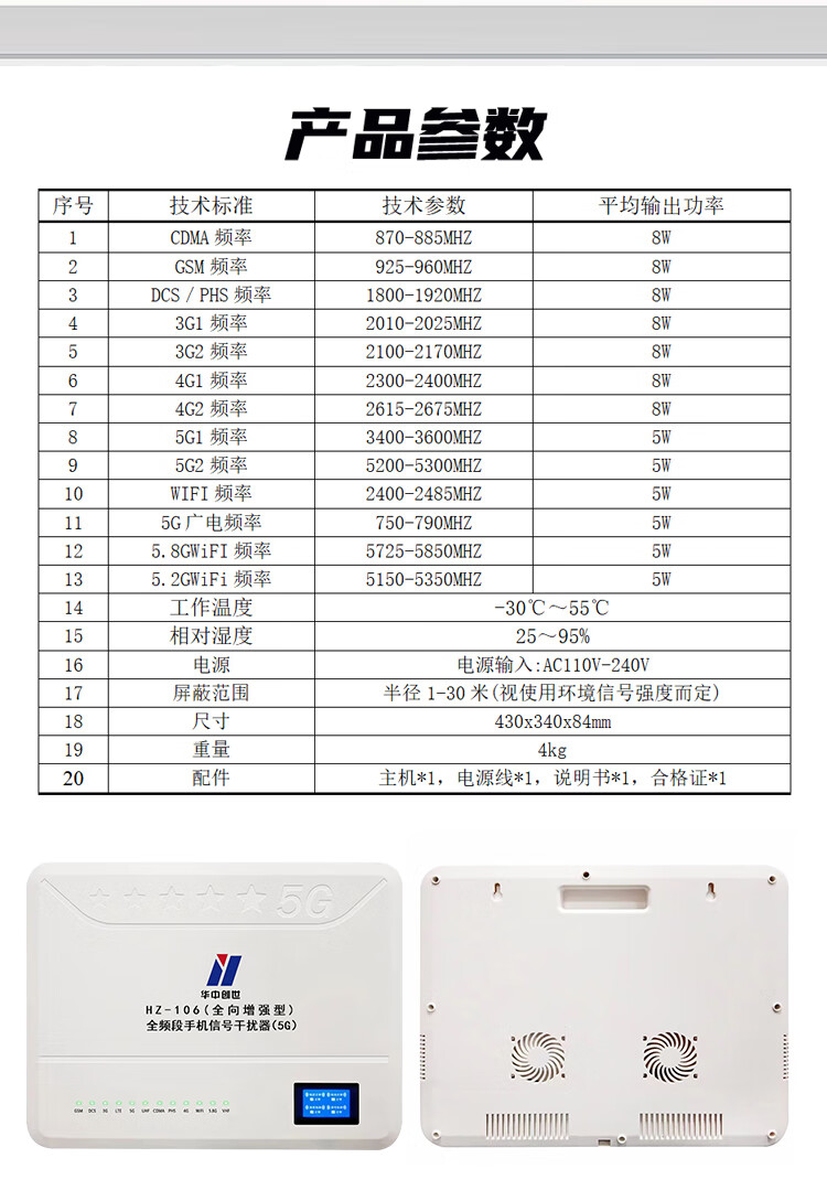 华中创世 HZ-106 大功率信号干扰器 /隔断器/抑制器/截断器/隔离器/会议信息保密机 自营