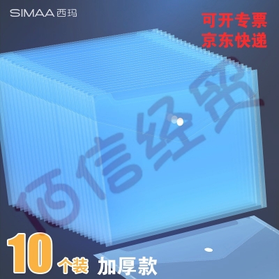 西玛表单 10个装 A4蓝色透明按扣文件袋 加厚 试卷收纳 防水资料档案袋 学生文件 6129 蓝色加厚款-10只装 6129 自营