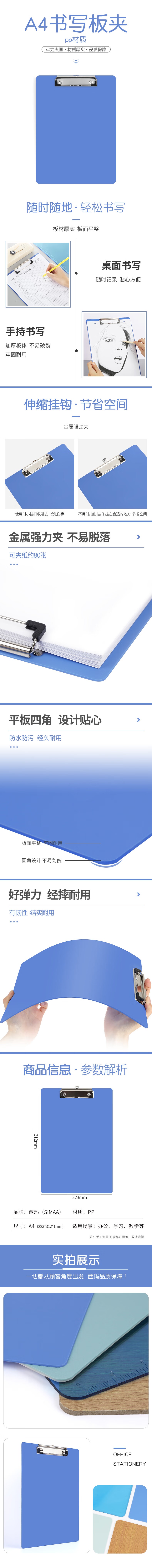 西玛(SIMAA)A4书写板夹PP 金属强力夹文件夹 多功能写字垫板 简约硬质会议夹8624(10个起售) 自营