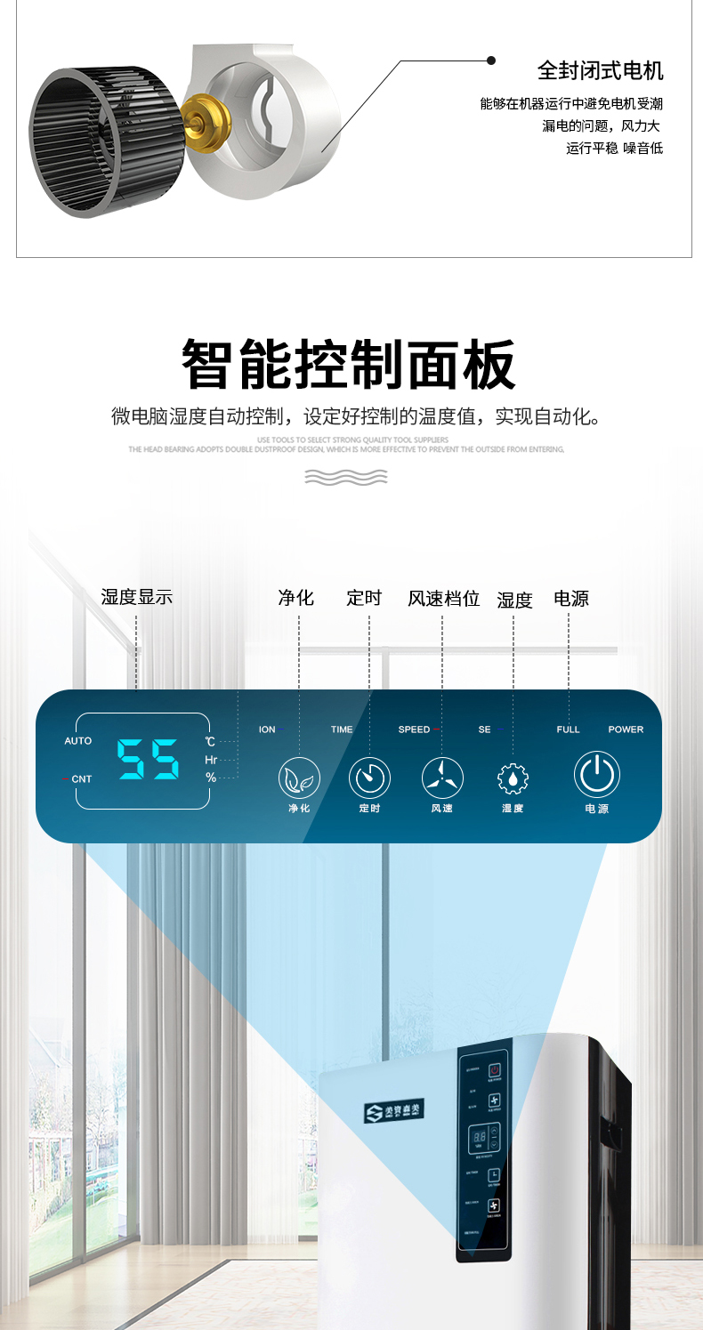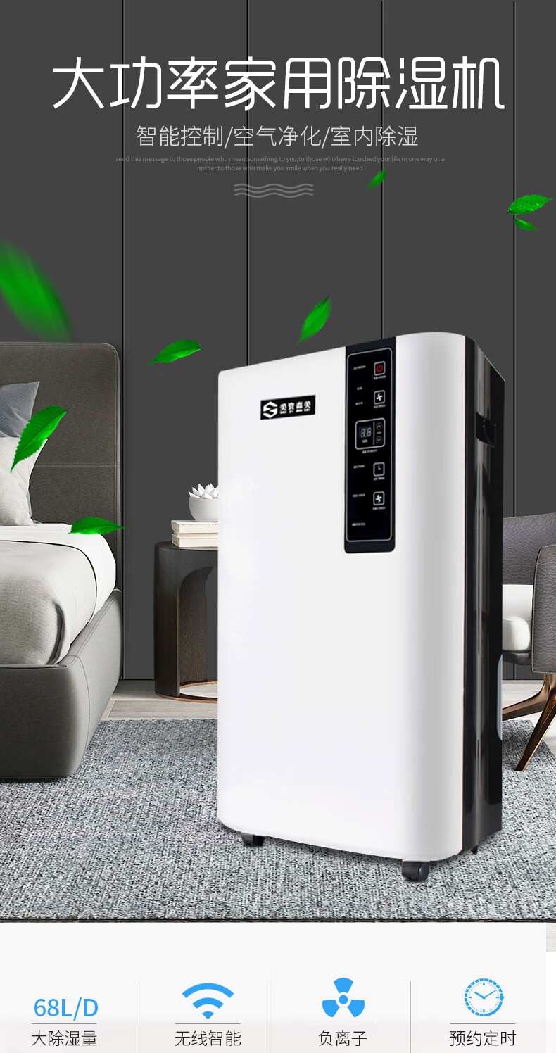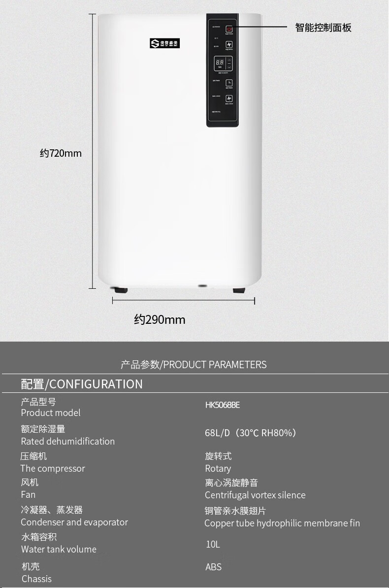 美资森美(MEIZISENMEI) 美资森美除湿机家用静音抽湿机别墅地下室大功率除湿器办公室净化 HK5068BE 白色 自营