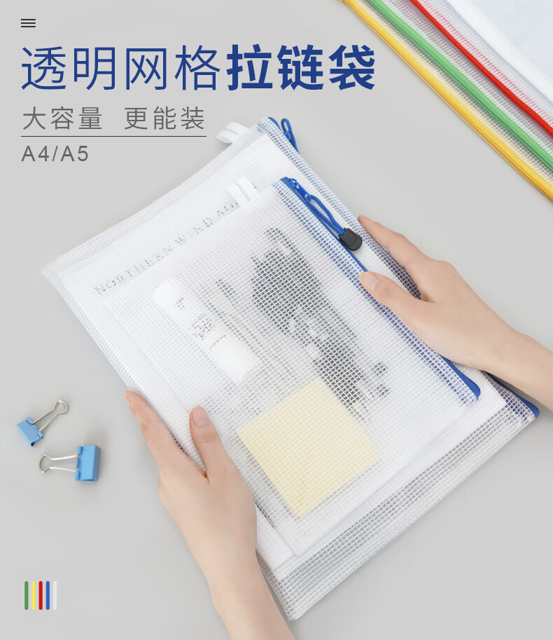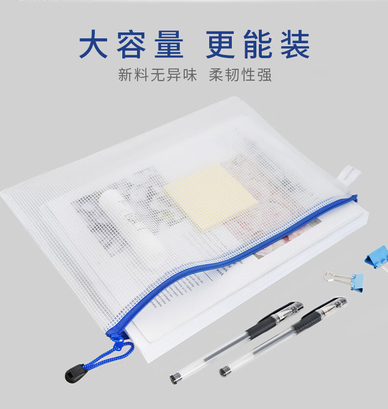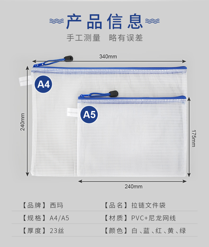 西玛(SIMAA)5只蓝色A4拉链袋 软质文件袋 防水资料袋 办公收纳袋6790 自营