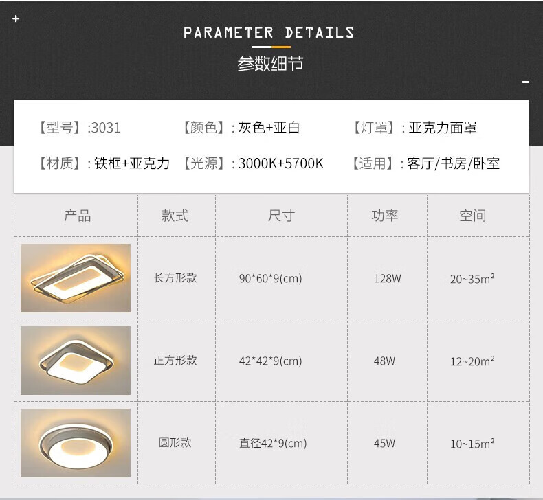 康佳(KONKA)LED吸顶灯客厅大灯卧室书房全屋灯具套餐【拉登】48瓦-三色调光 【拉登】 2室2厅 自营