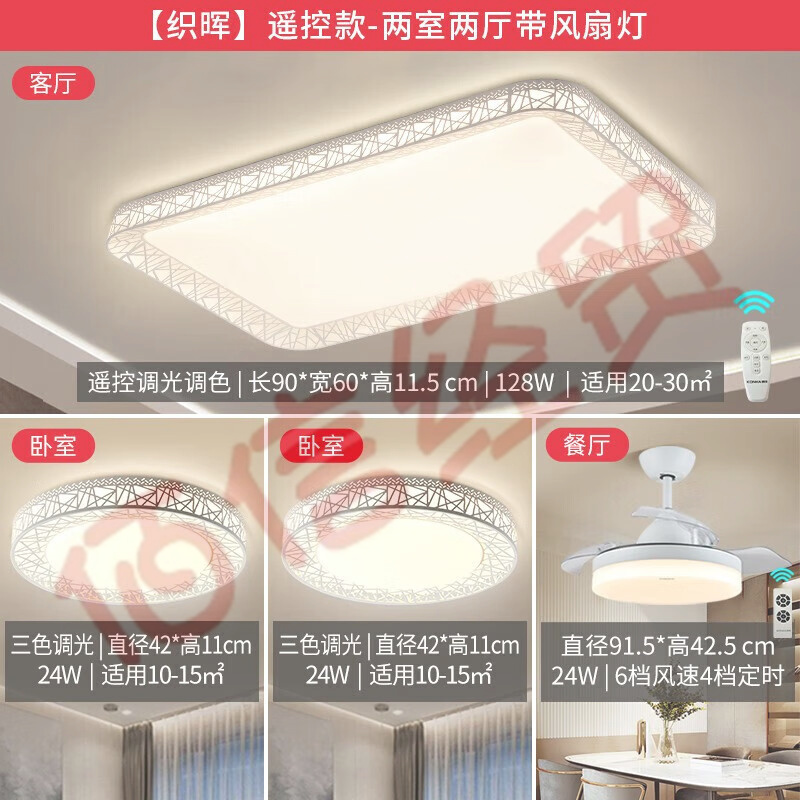 康佳(KONKA)吸顶灯铝材大气灯饰客厅卧室餐厅书房饭厅现代茶室别墅 【织晖】两室两厅带风扇 自营