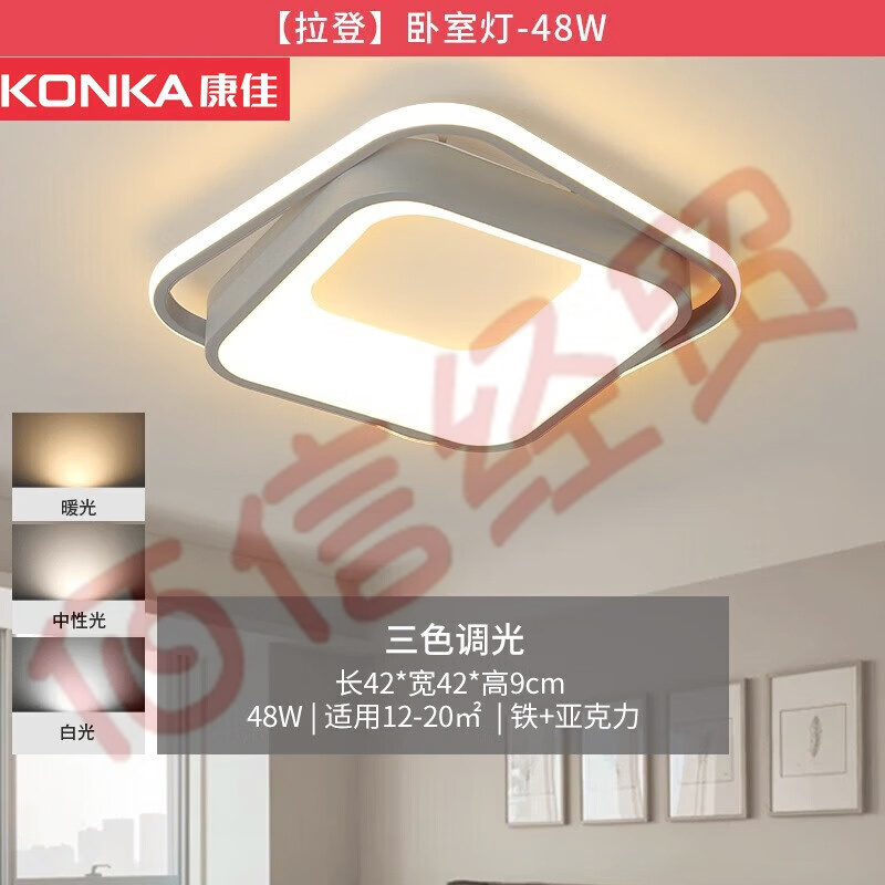 康佳(KONKA)照明LED客厅大灯吸顶灯餐厅卧室全屋灯具套餐 48瓦-三色调光方卧室灯 自营