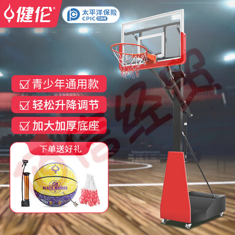 健伦(JEEANLEAN)篮球架户外室内成人可移动升降标准篮球框含保护套篮板140*90cm 自营