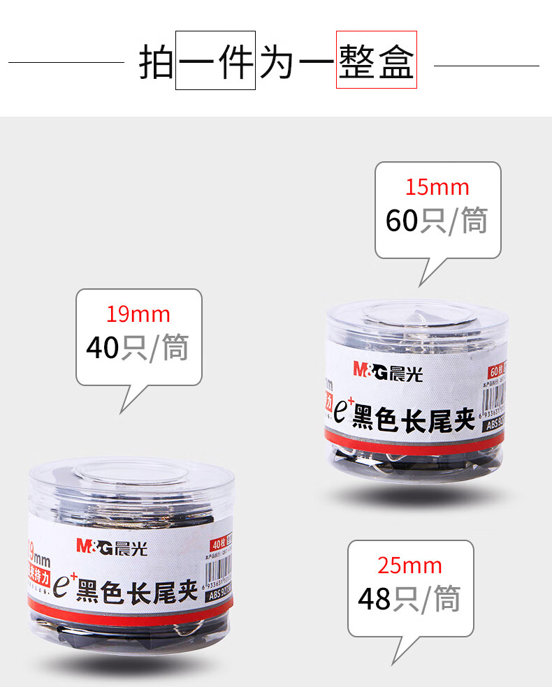 晨光(M&G)晨光 长尾夹燕尾夹学生办公夹子凤尾夹彩色大中小号蝴蝶夹凤尾夹票据夹 1筒装黑色50mm(12枚/筒) 自营