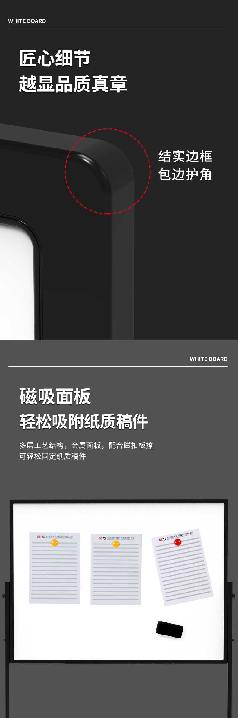 晨光(M&G) 150*90cmH型支架式白板 双面书写翻转会议办公教学家用可移动升降磁性白板黑板写字板ADB983T6 自营