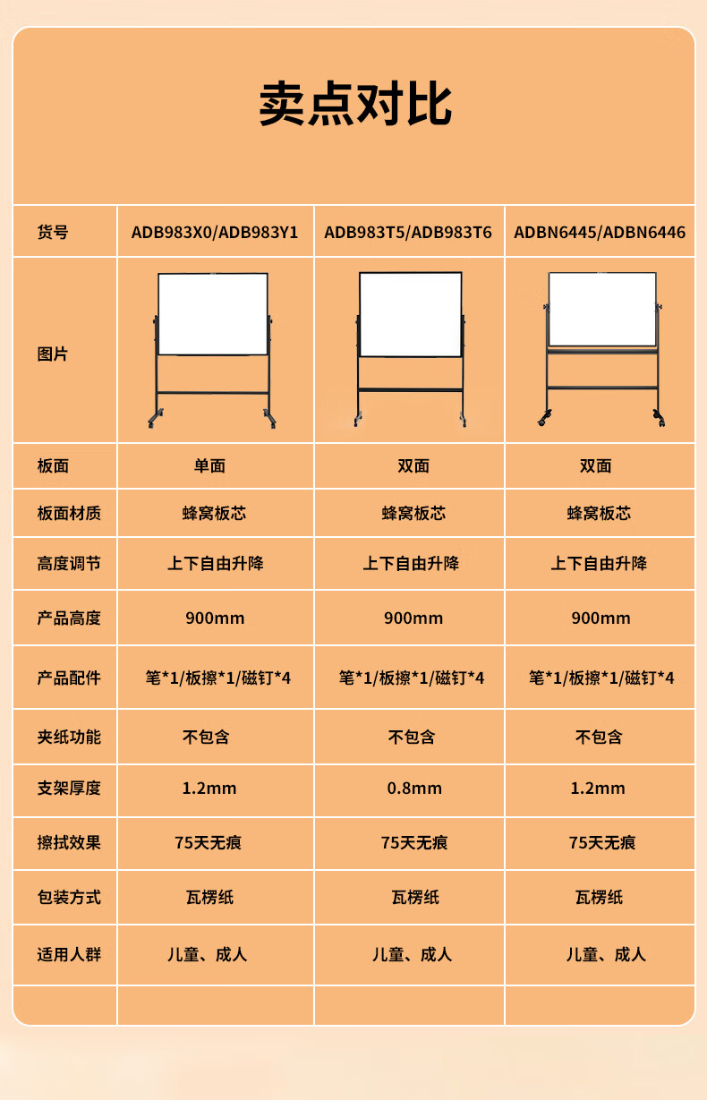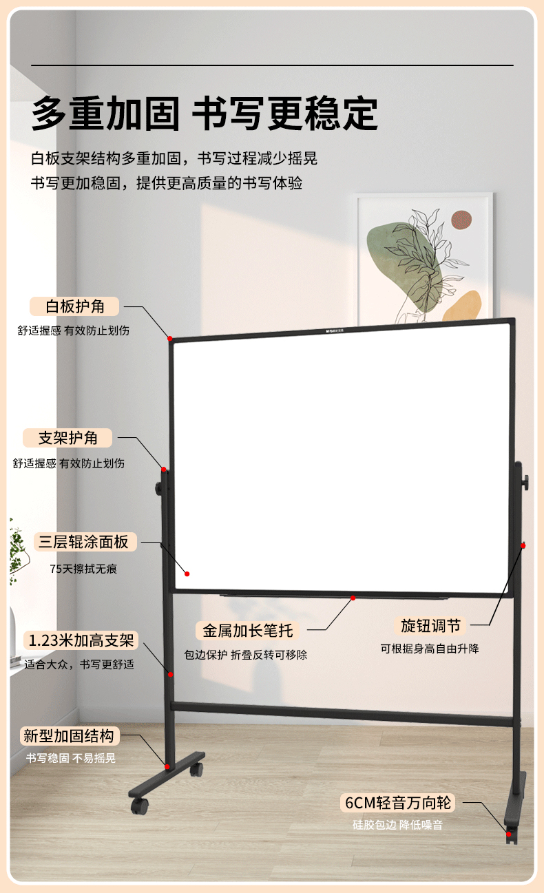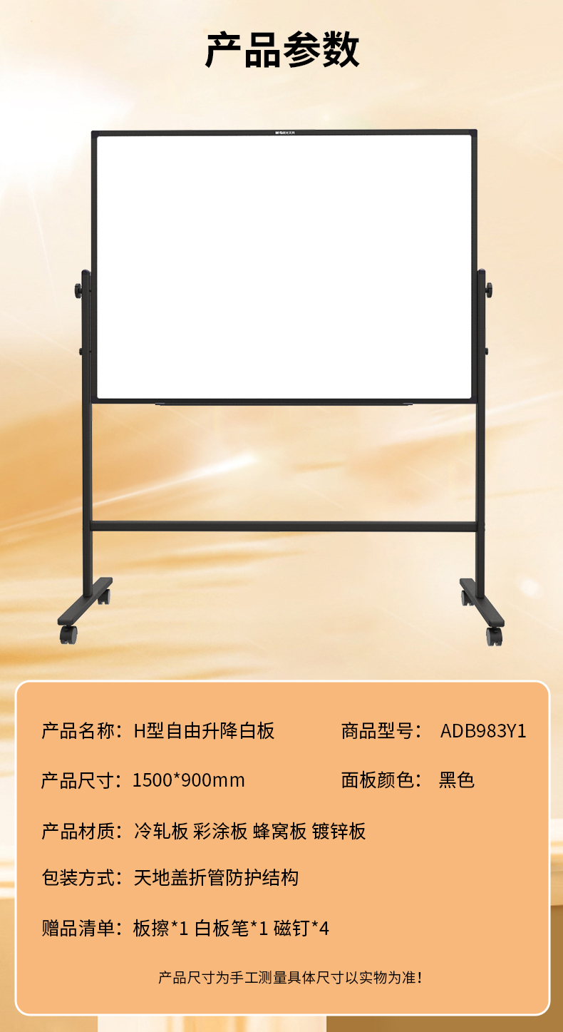 晨光(M&G) 150*90cmH型支架式单面白板 会议办公教学家用书写可移动升降磁性白板黑板写字板ADB983Y1 自营