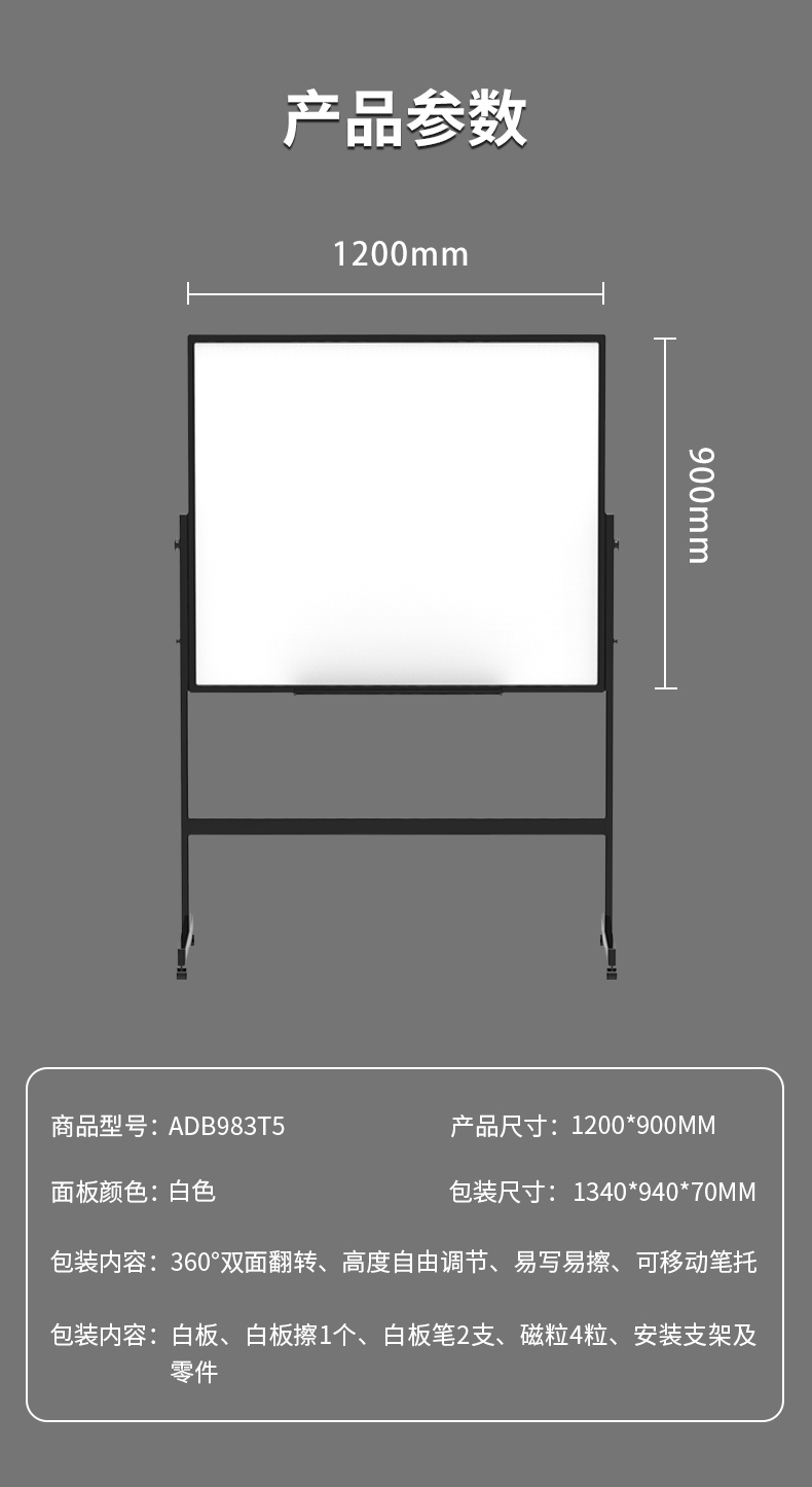 晨光(M&G) 120*90cmH型支架式白板 双面翻转可移动会议办公教学家用升降磁性白板黑板写字板ADB983T5 自营
