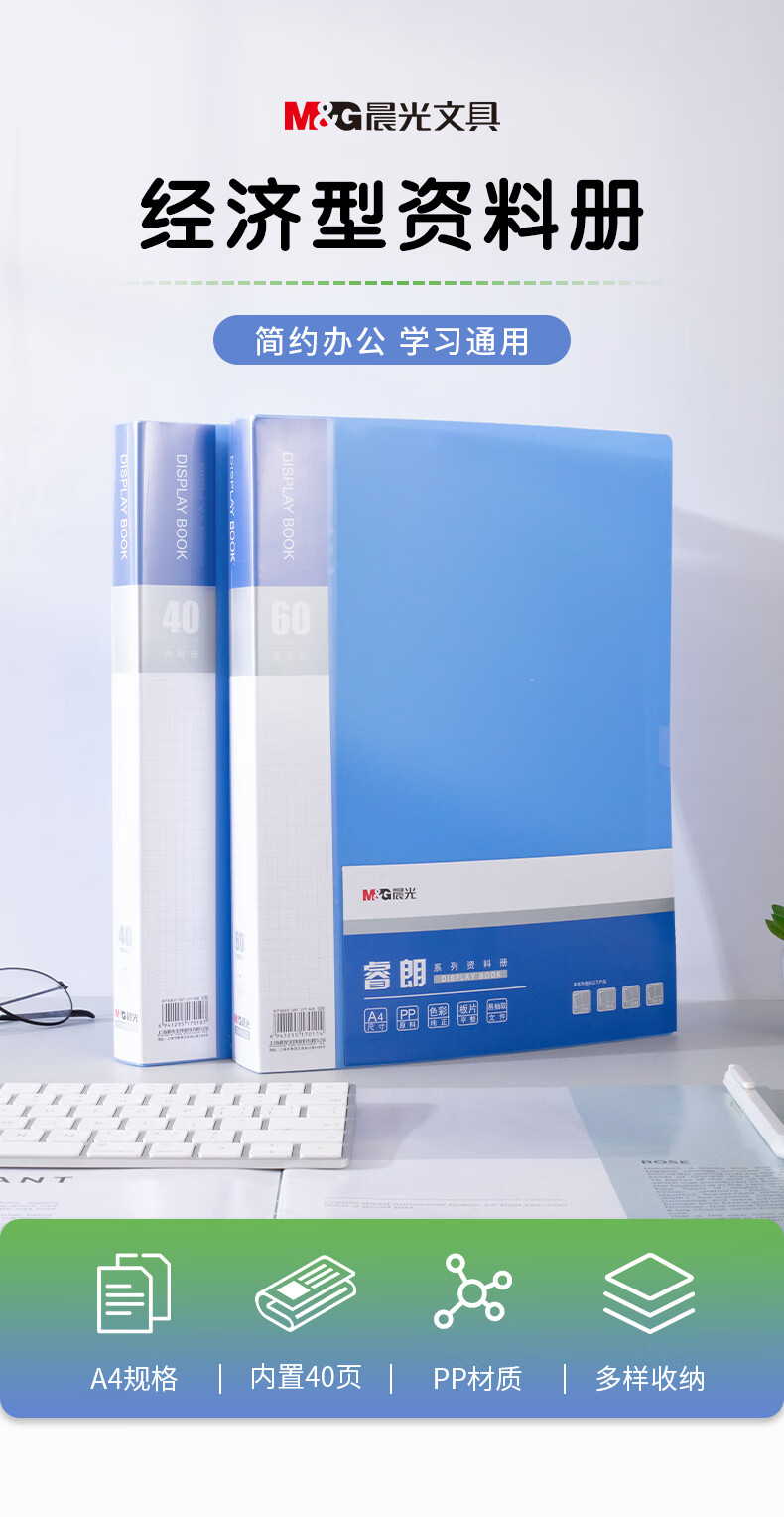 晨光(M&G)10只A4/40页资料册办公文件册防水文件插页袋文件夹学生试卷科目收纳保护睿朗办公用品ADM929Z4 自营