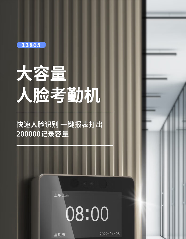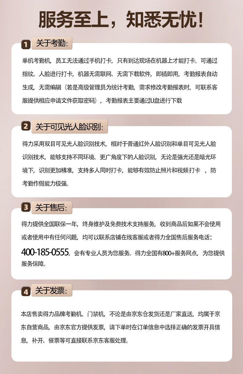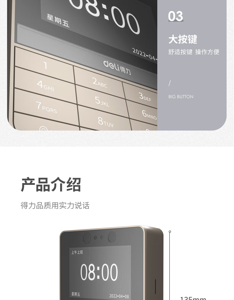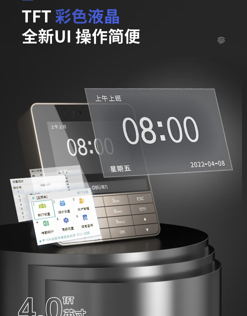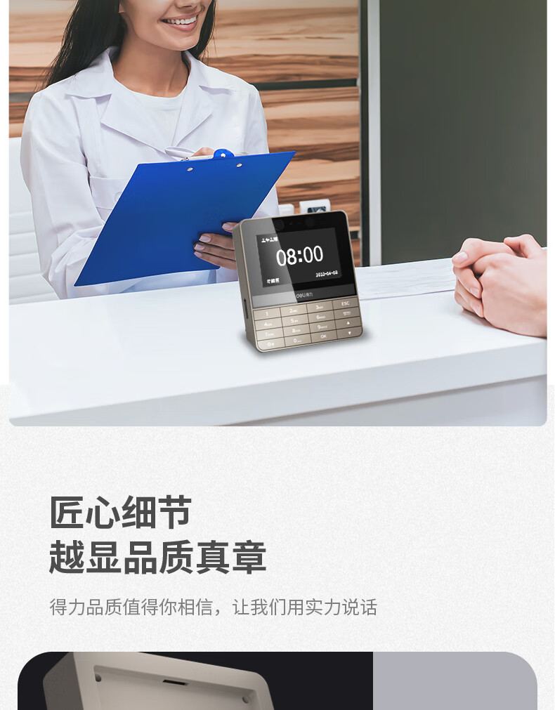 得力(deli)人脸识别考勤机无接触打卡机签到机可见光动态识别防照片视频打卡一键导出报表13865 自营
